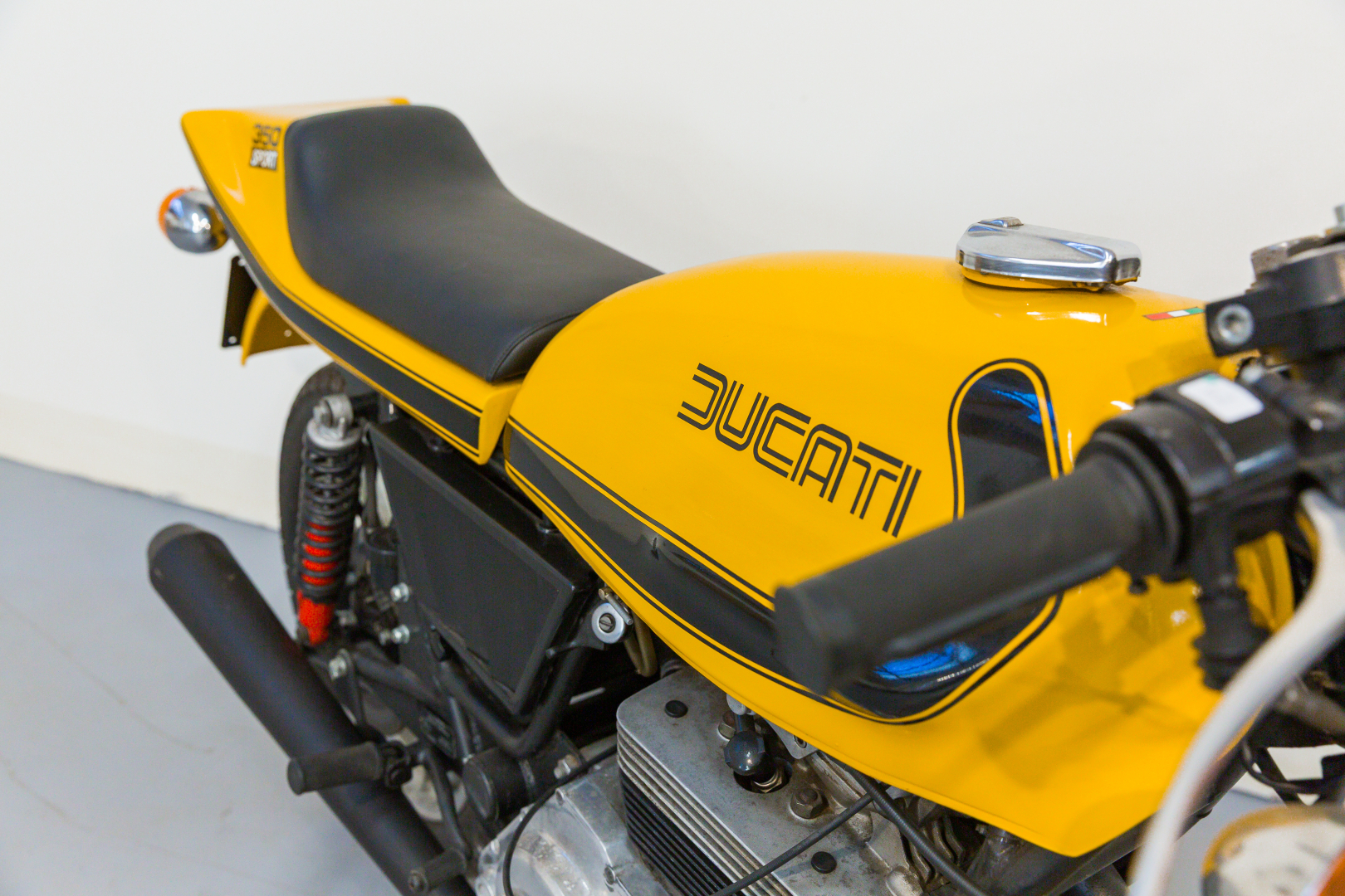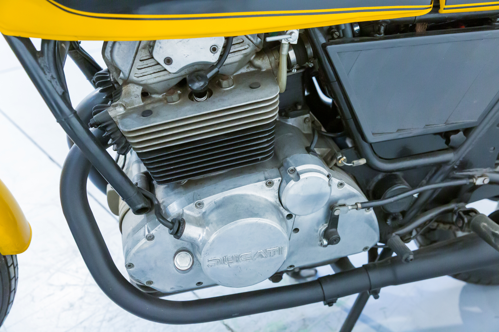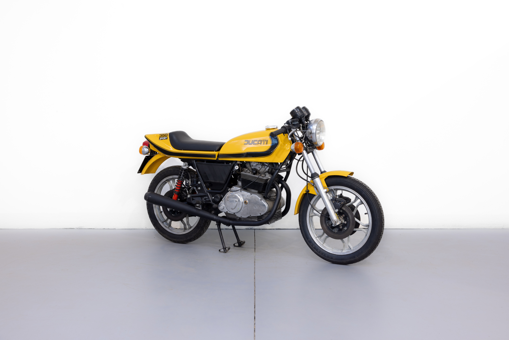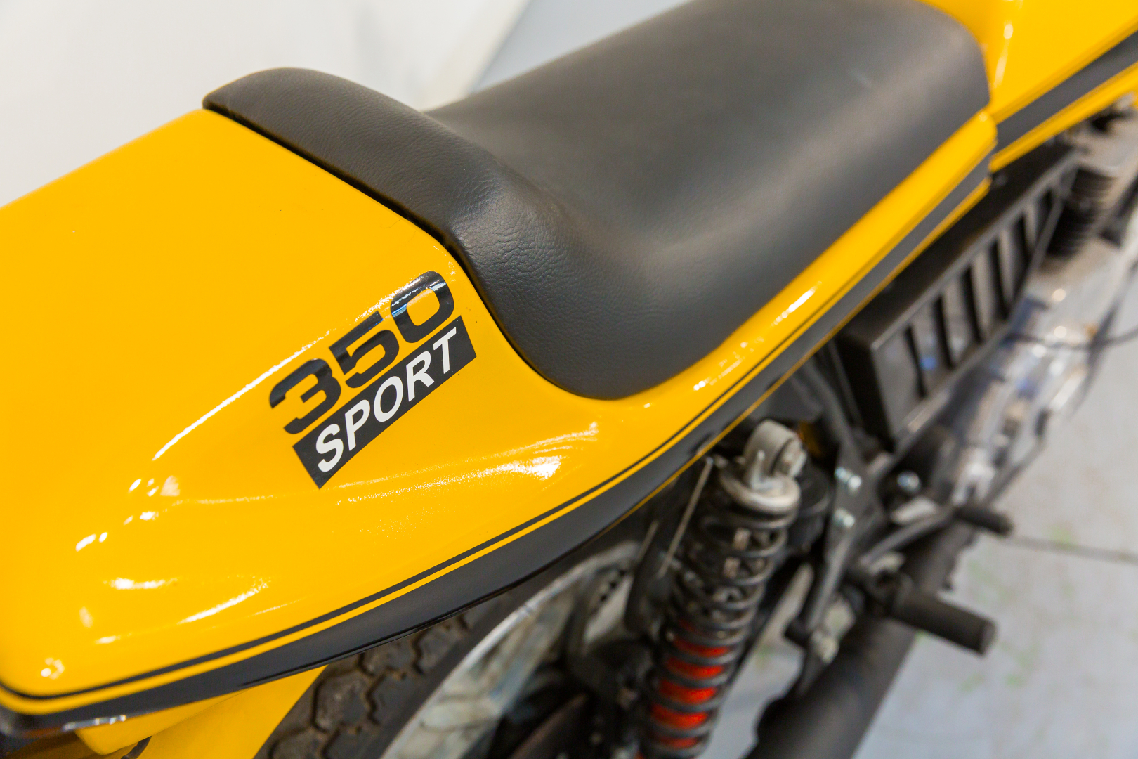 Introduced in 1976 to replace the less successful GTL model, the 350 Sport Desmo was designed under Leopoldo Tartarini, Ducati’s new head of design. Featuring a sportier look, it retained the parallel-twin front-mounted configuration but adopted desmodromic valve timing—long a hallmark of Ducati’s sport engines. Alloy wheels by FPS and a rear disc brake completed the upgrades. Preserved and in excellent condition. A general inspection is recommended before use.
