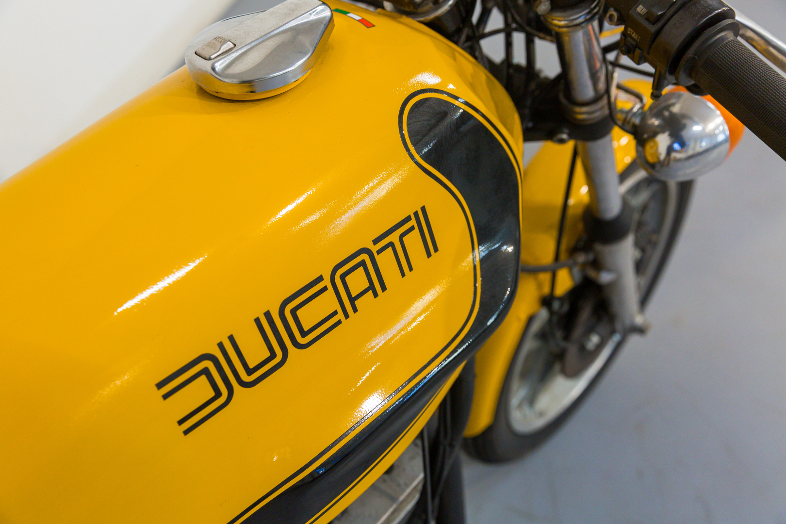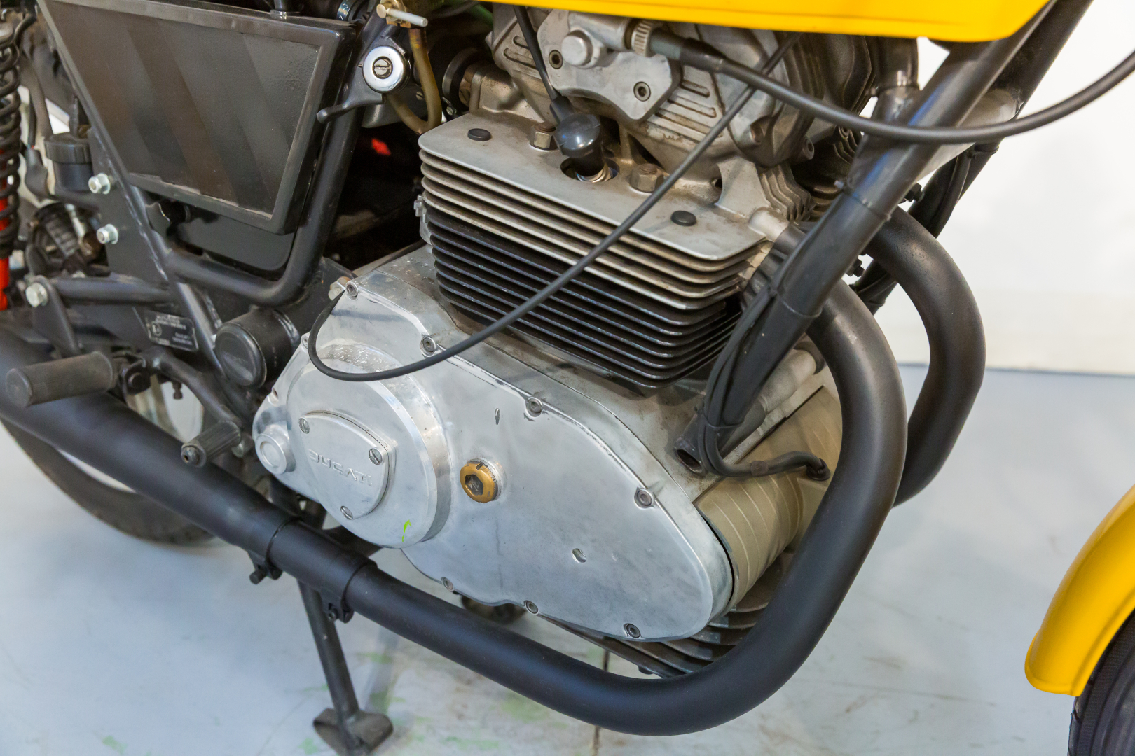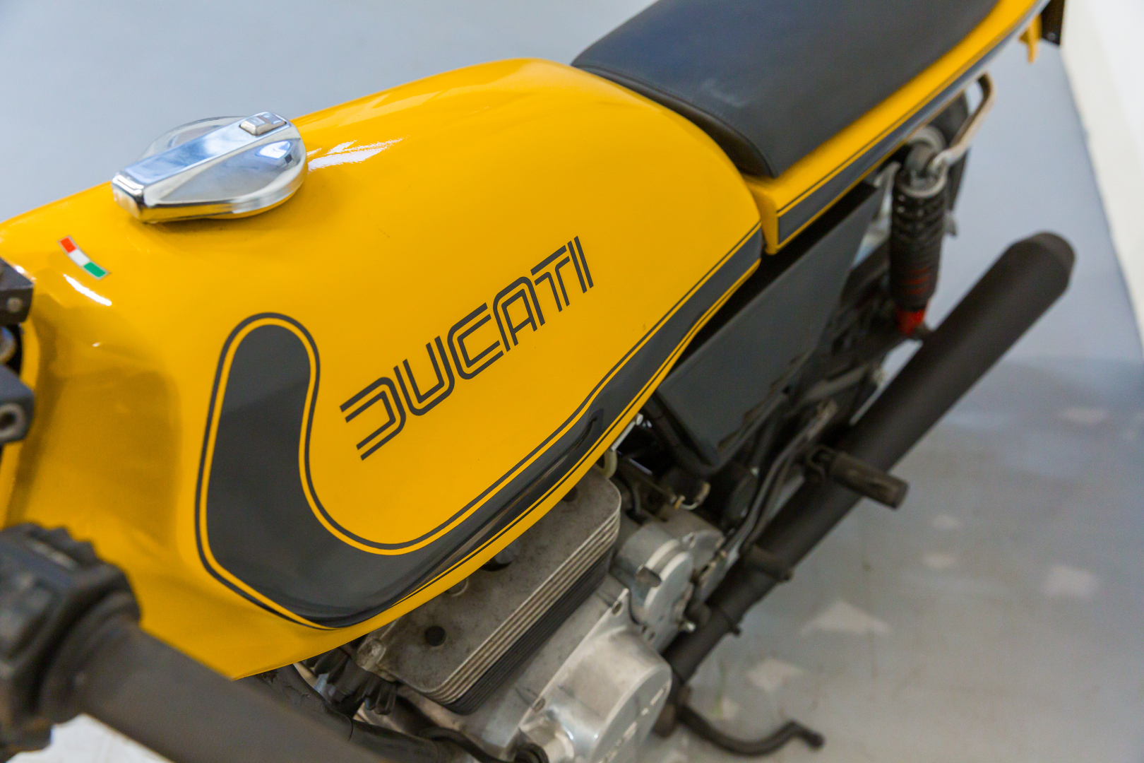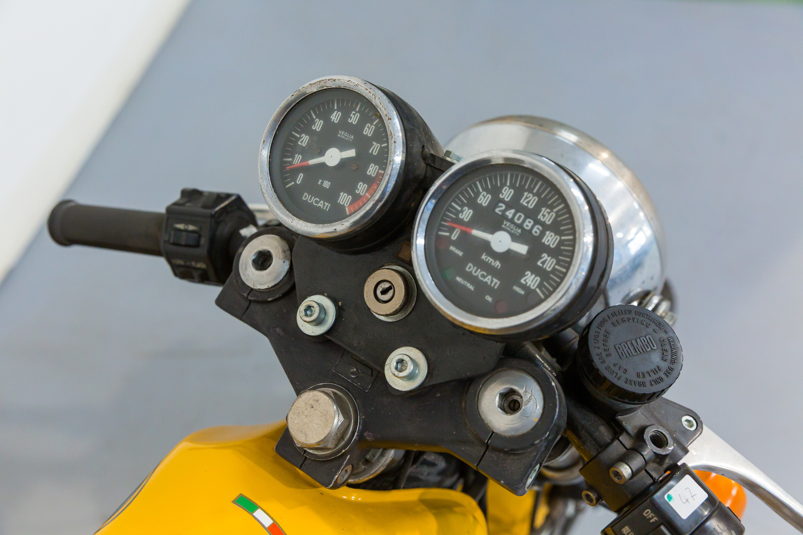 Introduced in 1976 to replace the less successful GTL model, the 350 Sport Desmo was designed under Leopoldo Tartarini, Ducati’s new head of design. Featuring a sportier look, it retained the parallel-twin front-mounted configuration but adopted desmodromic valve timing—long a hallmark of Ducati’s sport engines. Alloy wheels by FPS and a rear disc brake completed the upgrades. Preserved and in excellent condition. A general inspection is recommended before use.