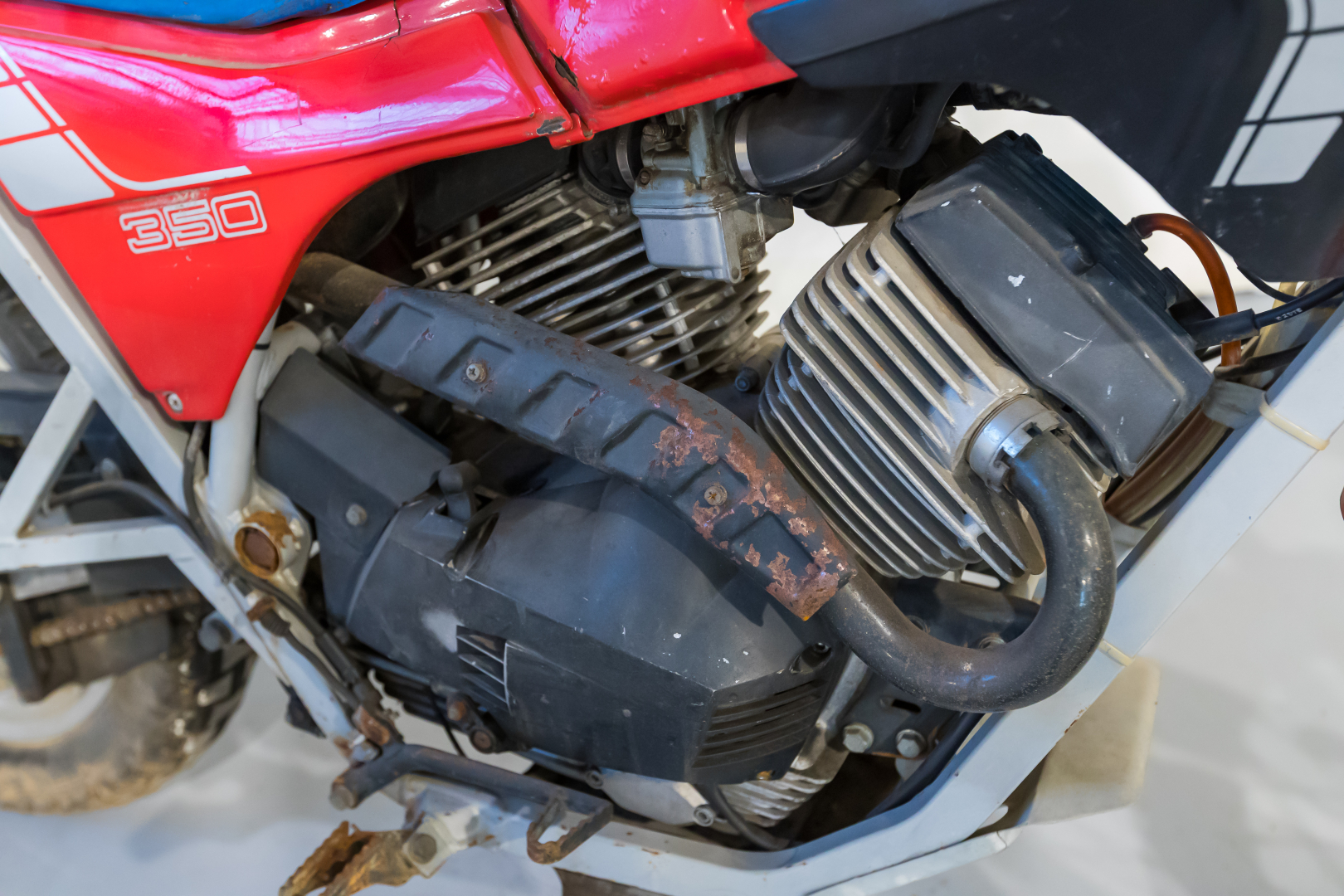 A thoroughly Italian response to the new enduro motorcycle segment. The Kanguro featured a newly designed chassis and high-quality components, making it a very appealing product. The engine—proven and highly reliable—was the same unit successfully used in the brand’s road models, fine-tuned for off-road use. This example is a second-series version with a front disc brake, overall in fair preserved condition. Suitable for parts or restoration project.
