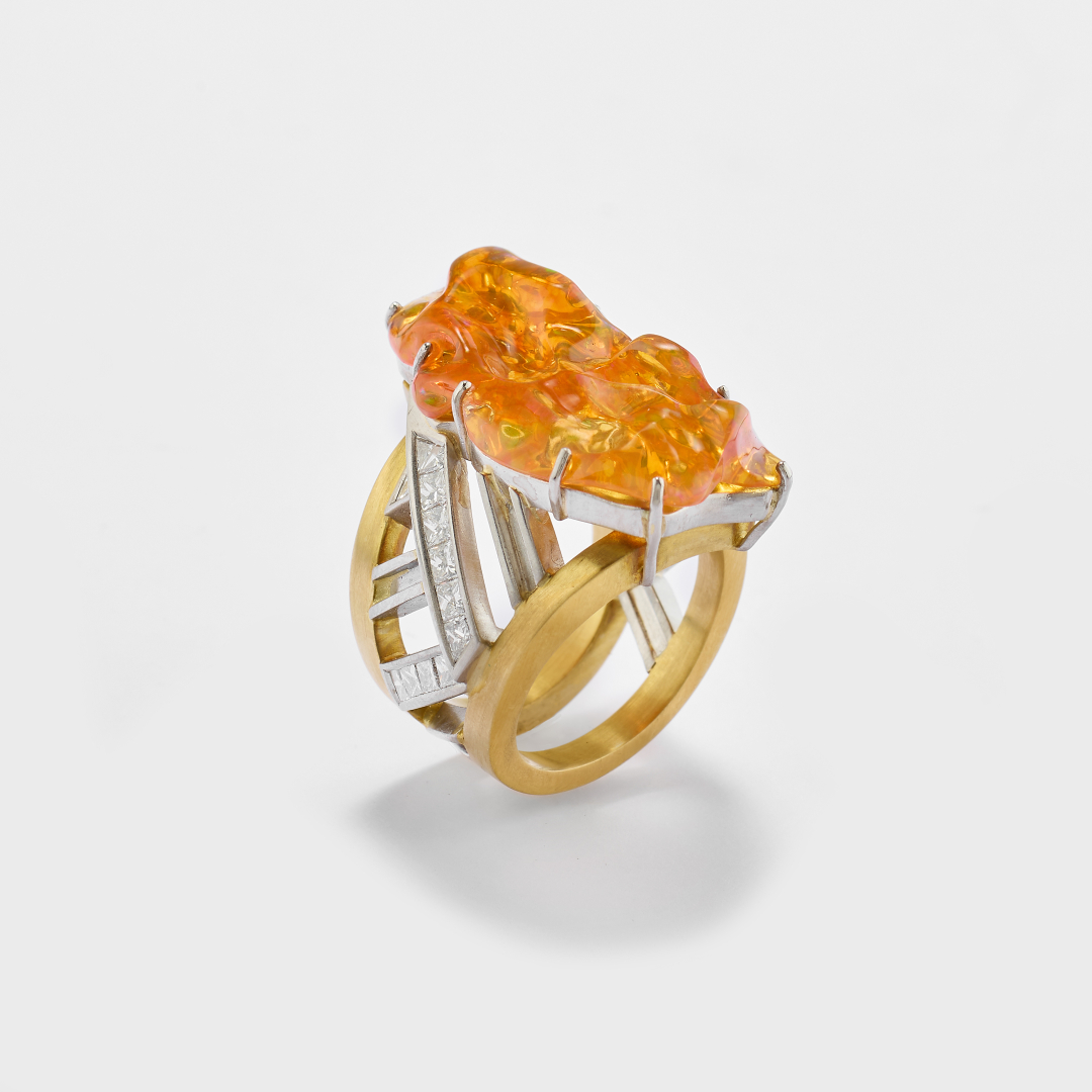 in platinum and yellow gold with Mexican opal weighing approx. 9.25 ct and twenty step-cut diamond weighing approx. 1.53 ct. Signed Cirio, Torino.