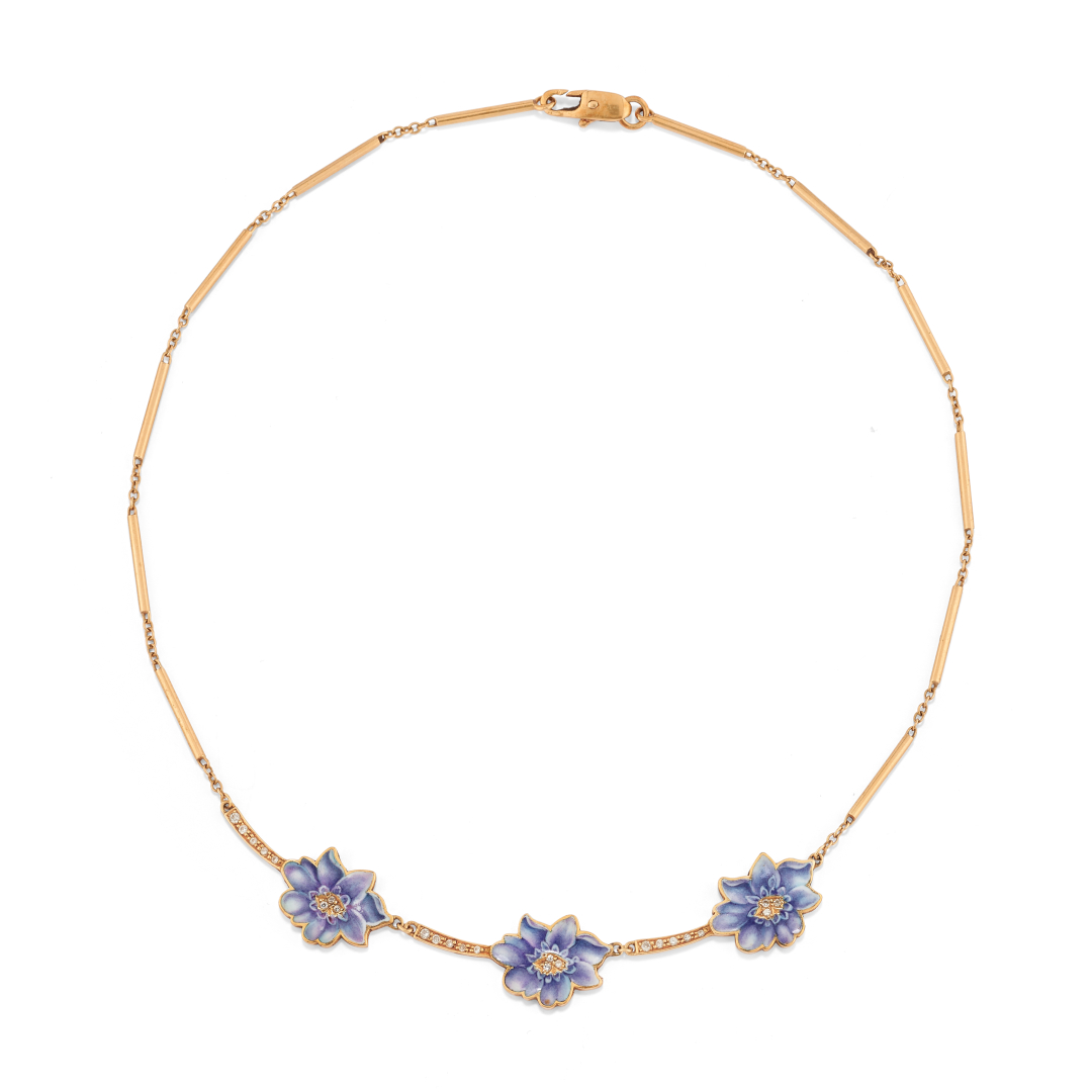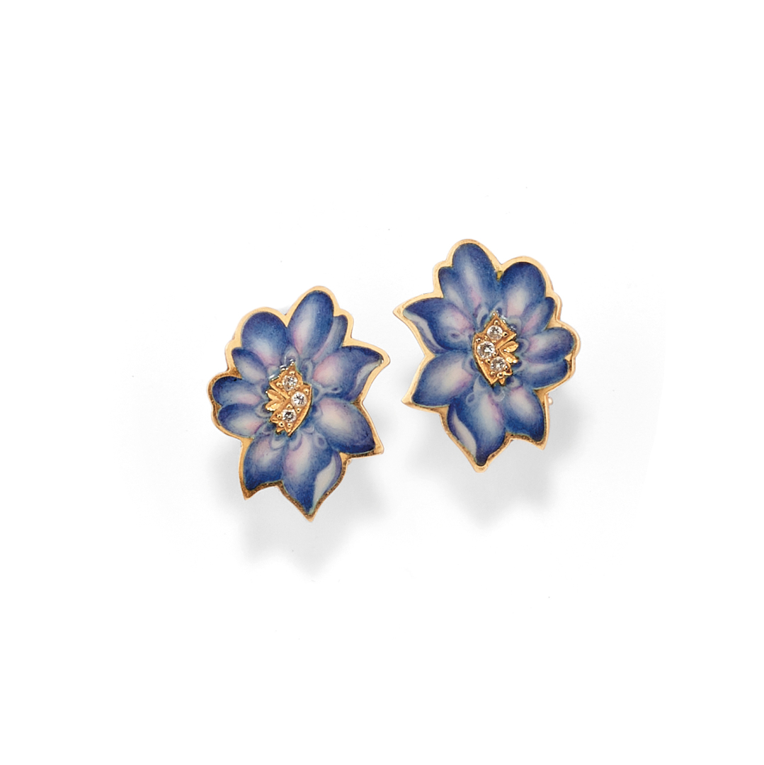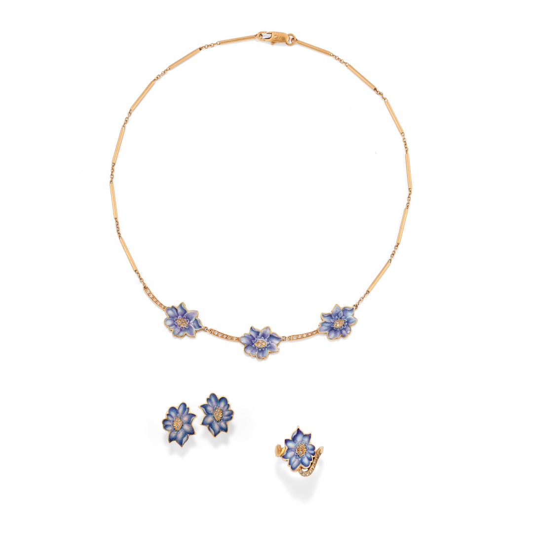 PARURE IN SMALTI AZZURRI E DIAMANTI
