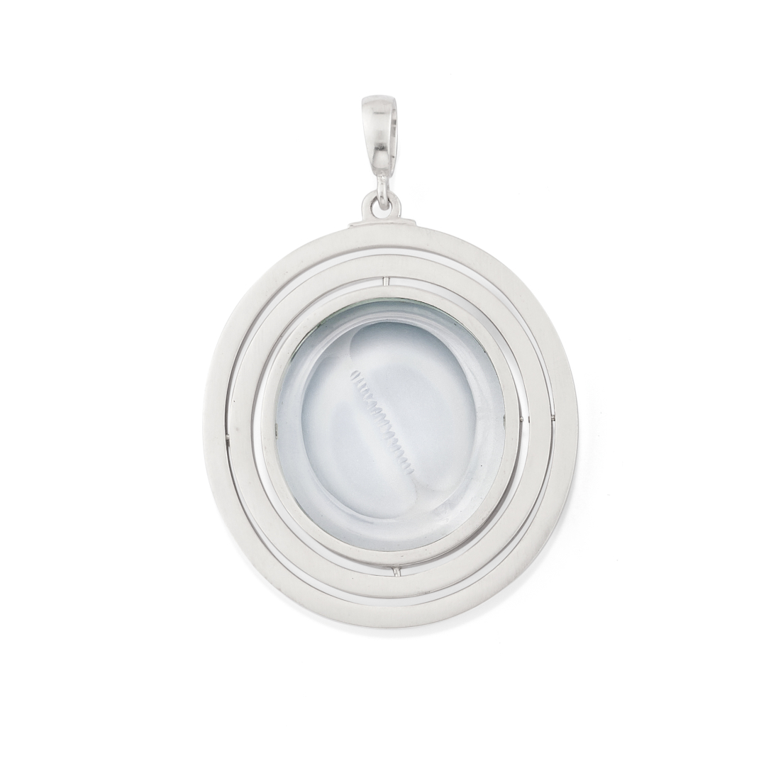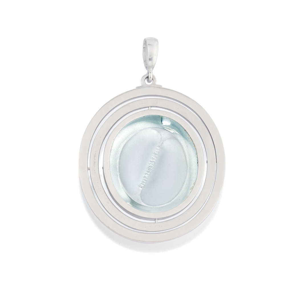 in white gold and large central oval engraved aquamarine weighing approx. 47.33 ct. Signed Cirio, Torino.