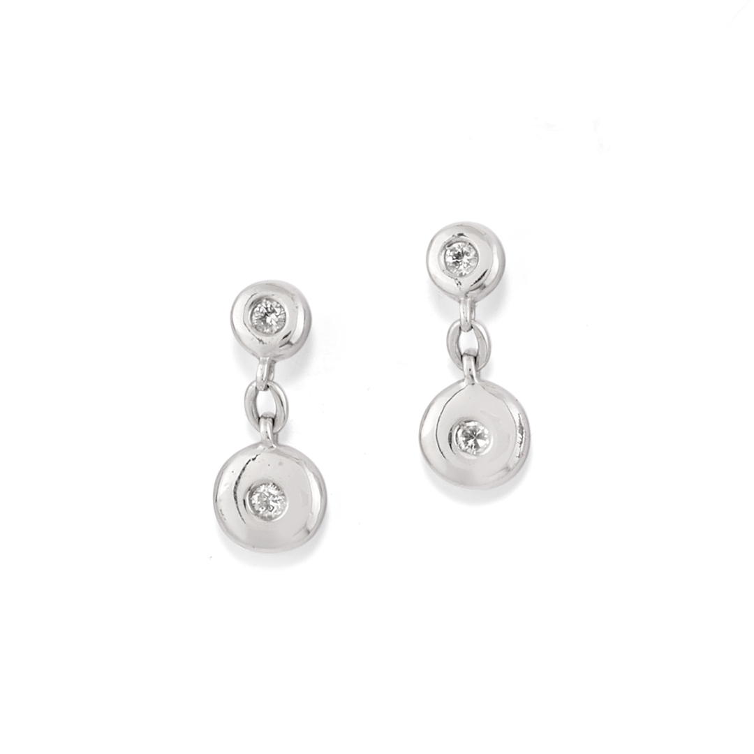 designed in polished white gold, each featuring a double diamond solitaire.