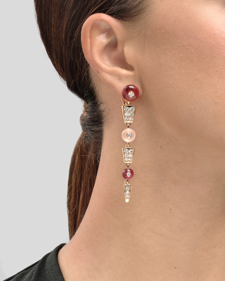 in rose gold, designed with rubellite, quartz, and brilliant-cut diamonds. Signed by Bulgari, with a Bulgari certificate and guarantee.
