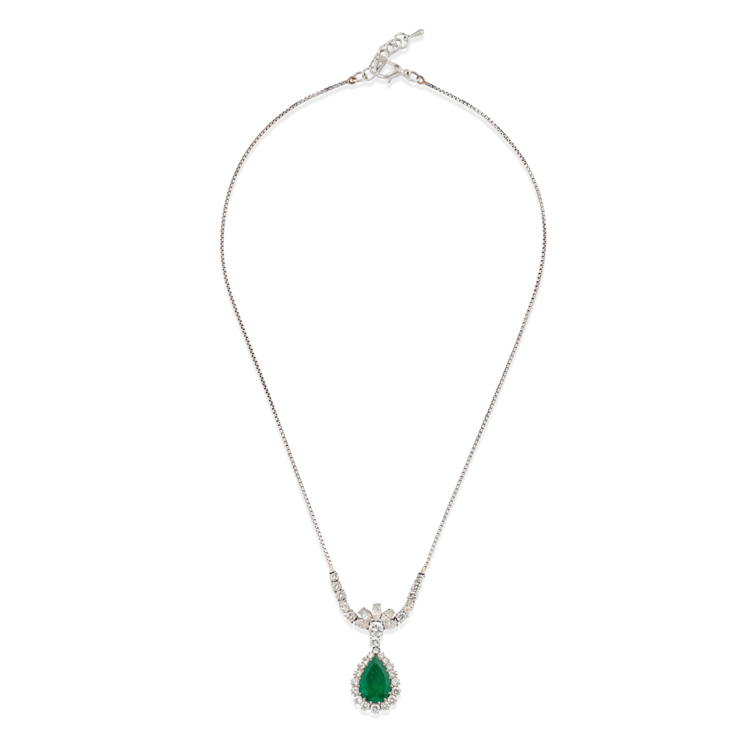 in white gold with marquise-cut and brilliant-cut diamonds weighing approx. 2.00 ct and a pendant with a pear-cut emerald weighing approx. 5.50 ct.