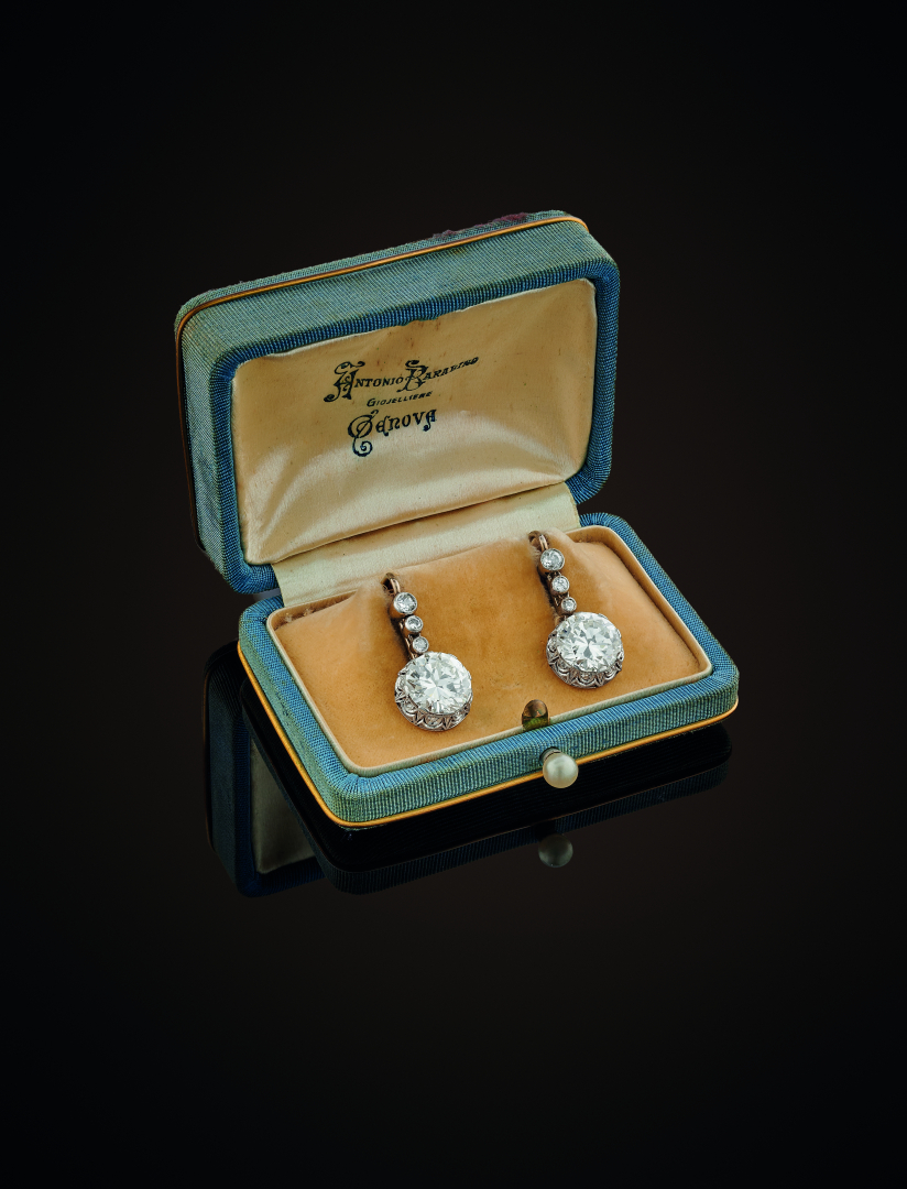 in white gold with two Old European-cut diamonds weighing approx. 3.00 ct each for a total of approx. 6.00 ct.