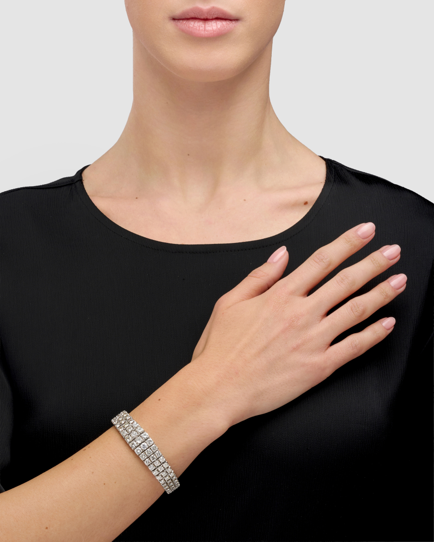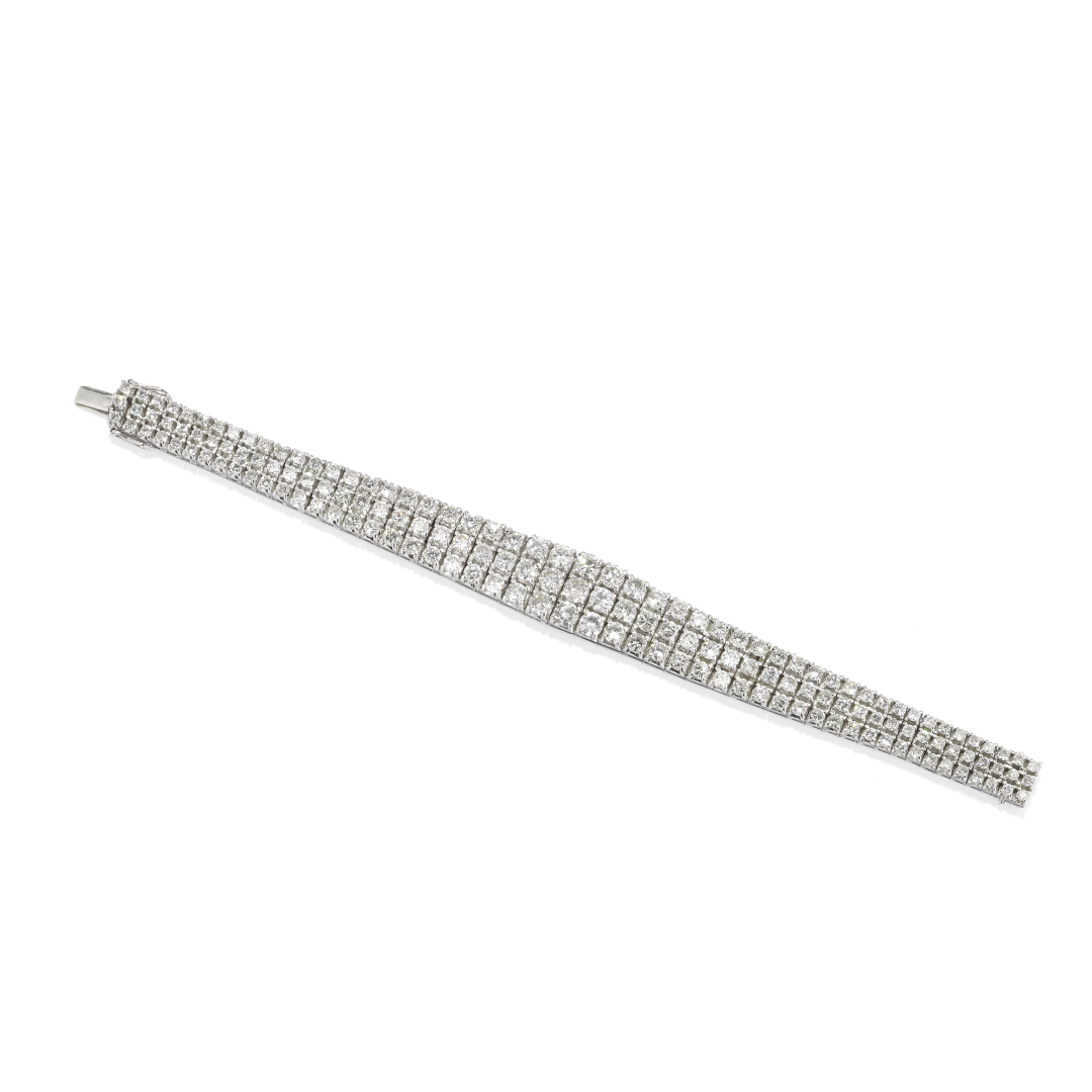 in white gold with three tapered rows of round brilliant-cut diamonds weighing approx. 15.00 ct all together.