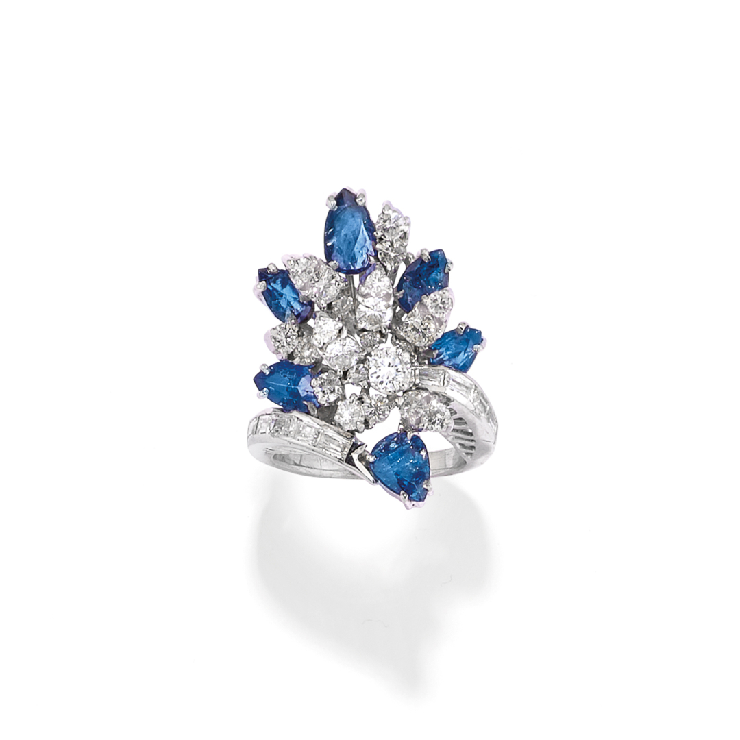 DEMI-PARURE IN DIAMANTI, ZAFFIRI E PIETRE BLU
