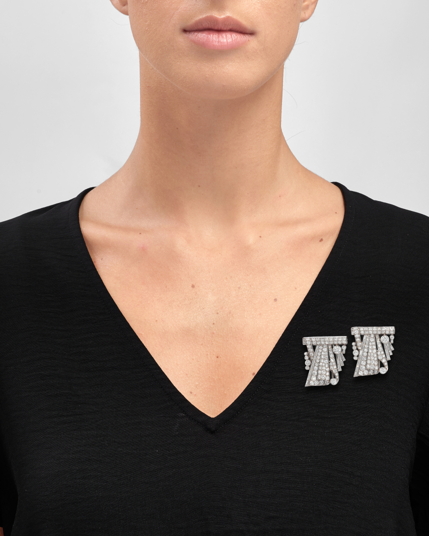 PAIR OF DIAMOND BROOCHES