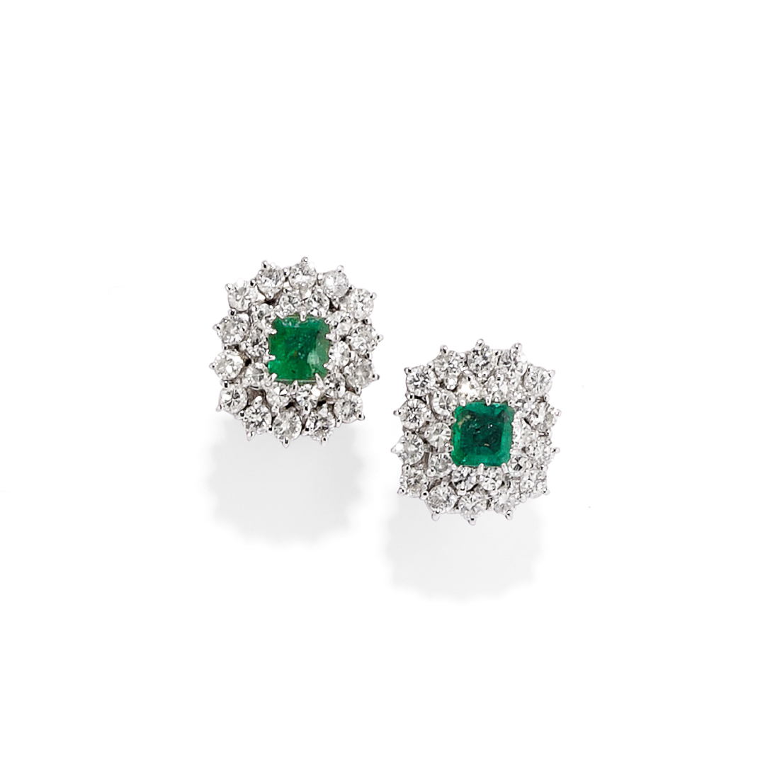 Gr 20,30 - Anello nr / ring size 14,5; Orecchini rubino / ruby earrings cm 1,80 x 1,60; Orecchini smeraldo / emerald earrings cm 1,30 x 1,20