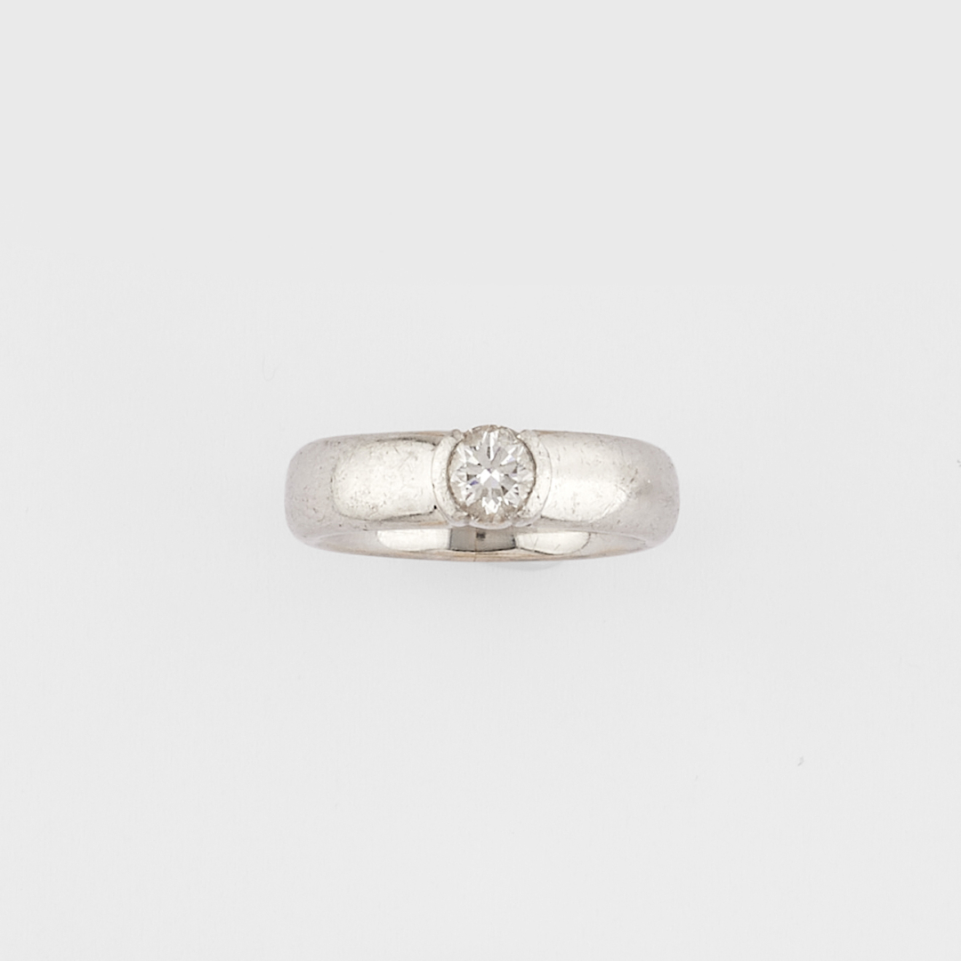 designed as a linear platinum band set with a brilliant-cut diamond weighing 0.51 ct. Signed Tiffany & Co. Accompanied by Tiffany & Co. original fitted case and gemmological certificate.