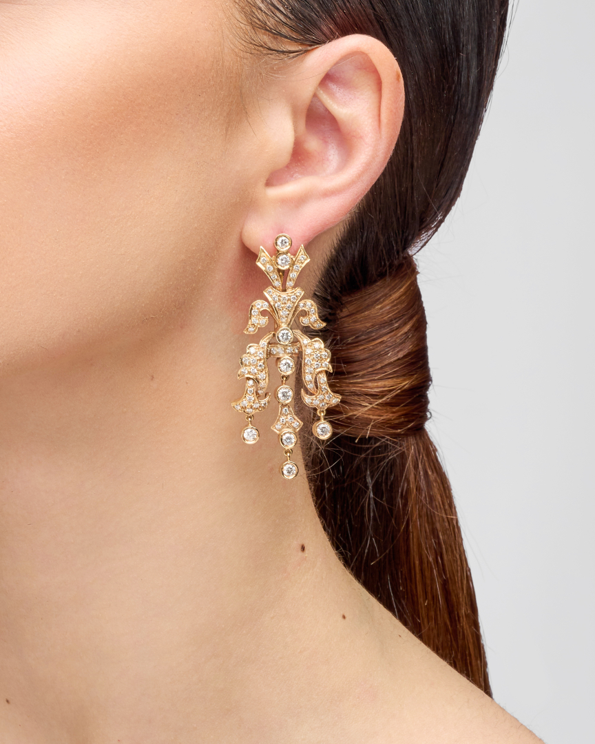 in 12K yellow gold with chandelier motif in diamonds weighing approx. 1.50 ct.