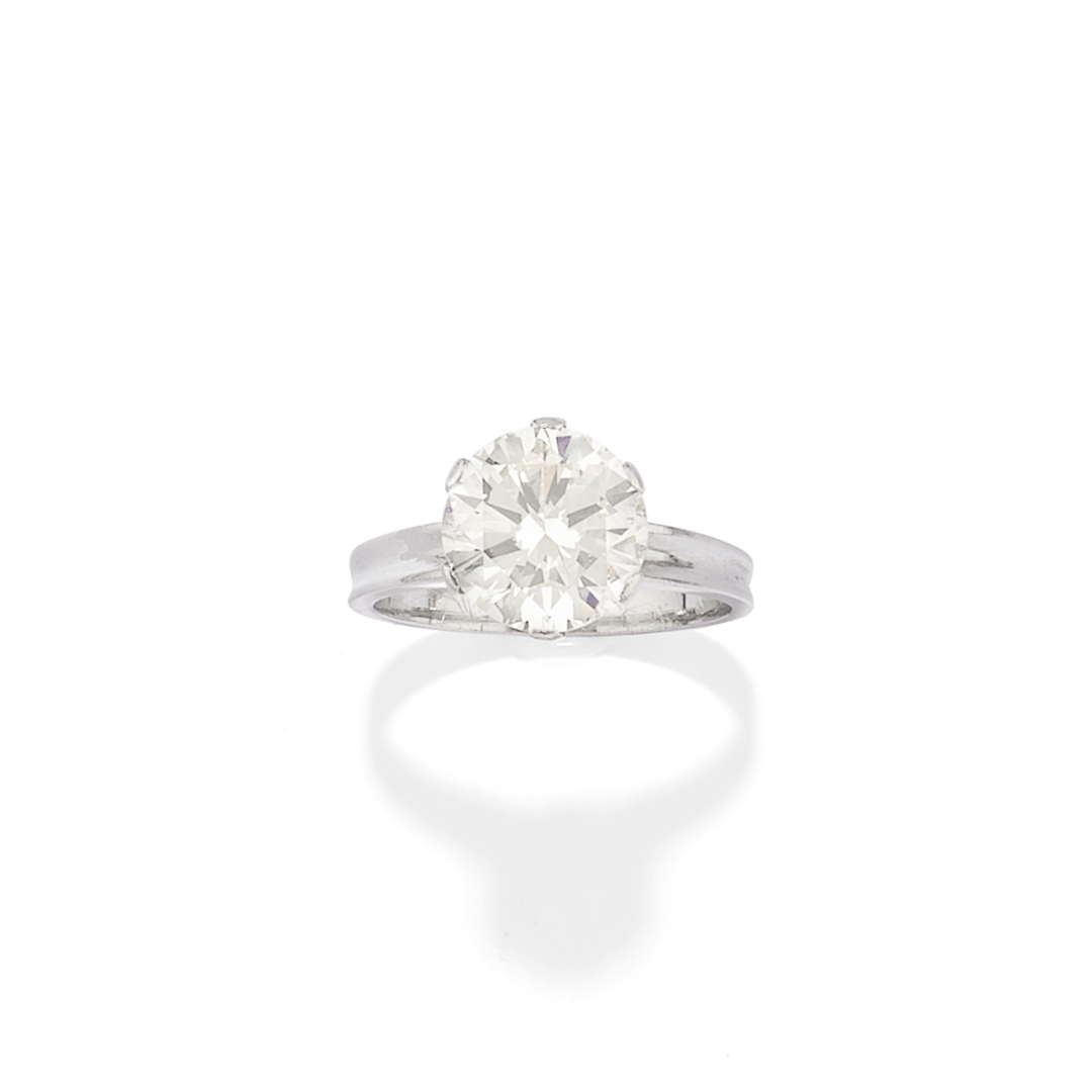 in platinum set with a round brilliant-cut diamond weighing approx. 3.00 ct.