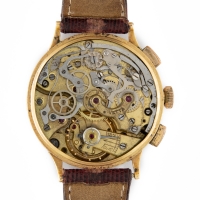 Manual winding movement signed “Vetta”, gilded caliber Valjoux 22, column wheel system for the chronograph, lever escapement, monometallic balance with screws, Breguet hairspring.