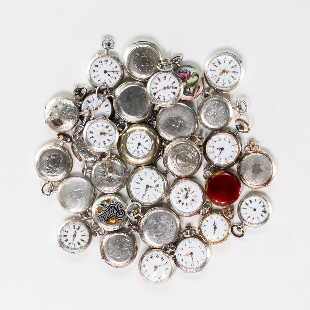 Lot including 30 key-less pocket watches.