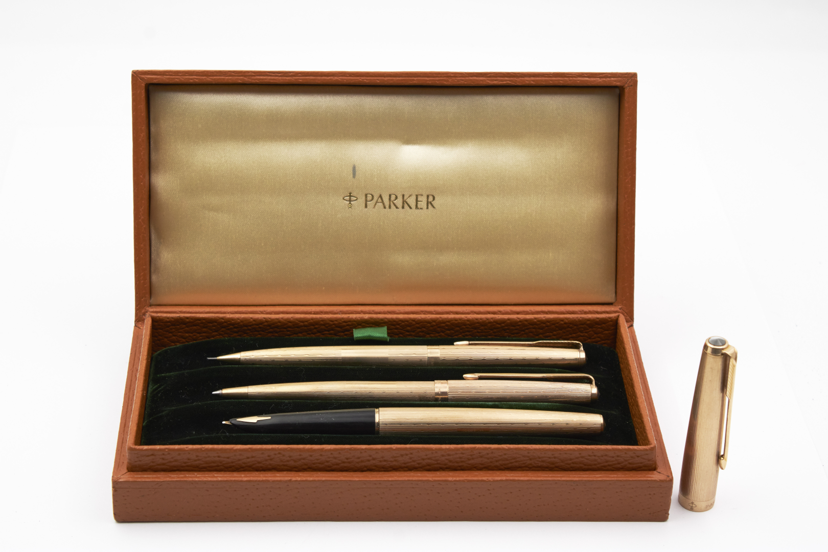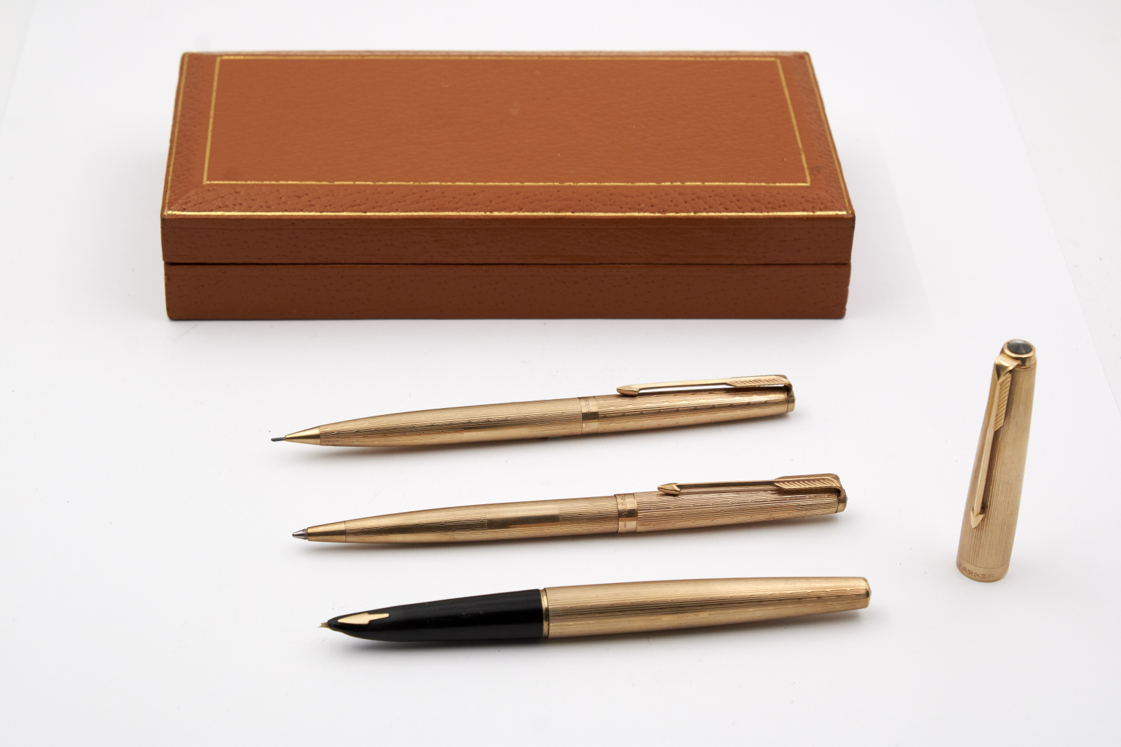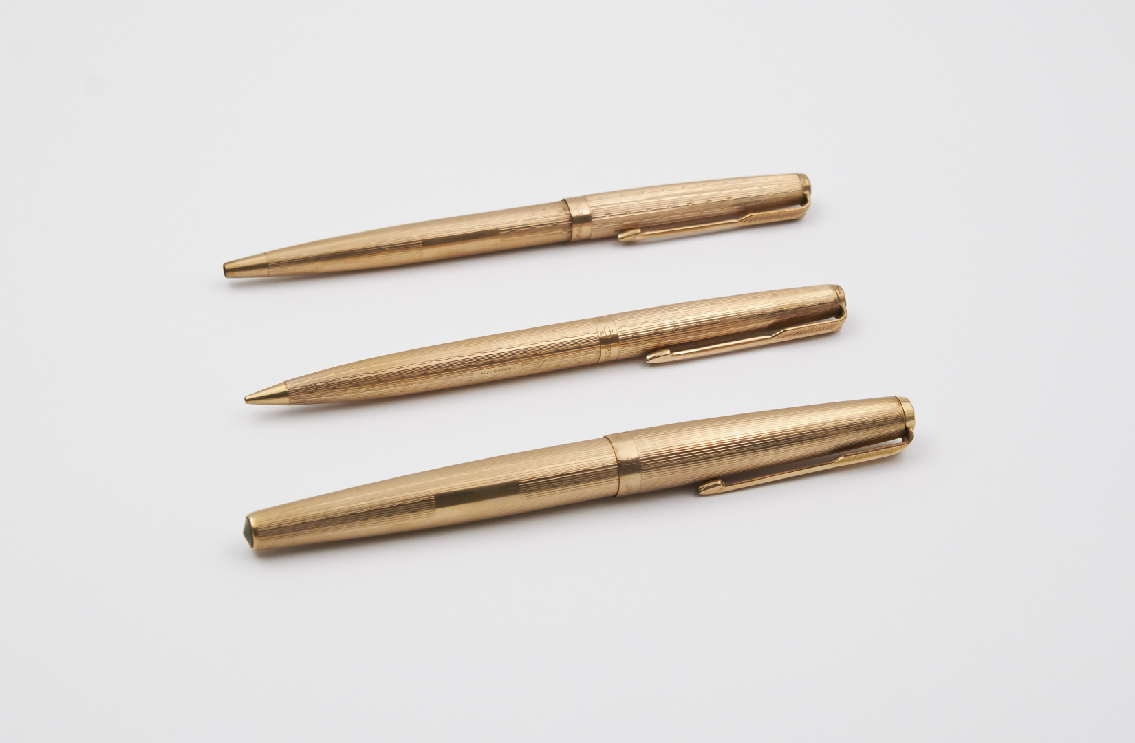 PARKER 51 PRESIDENTIAL GOLD TRIS FOUNTAIN PEN, BALLPOINT PEN AND MECHANICAL PENCIL