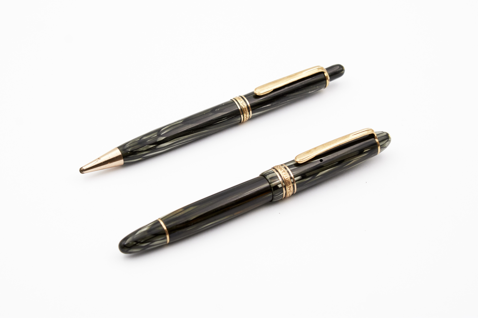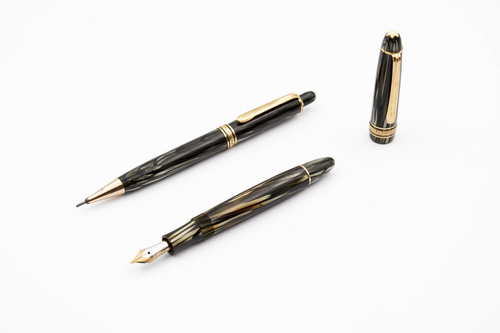 MONTBLANC MEISTERSTÜCK SET WITH 142 FOUNTAIN PEN AND PIX 172 MECHANICAL PENCIL, GREY STRIATED