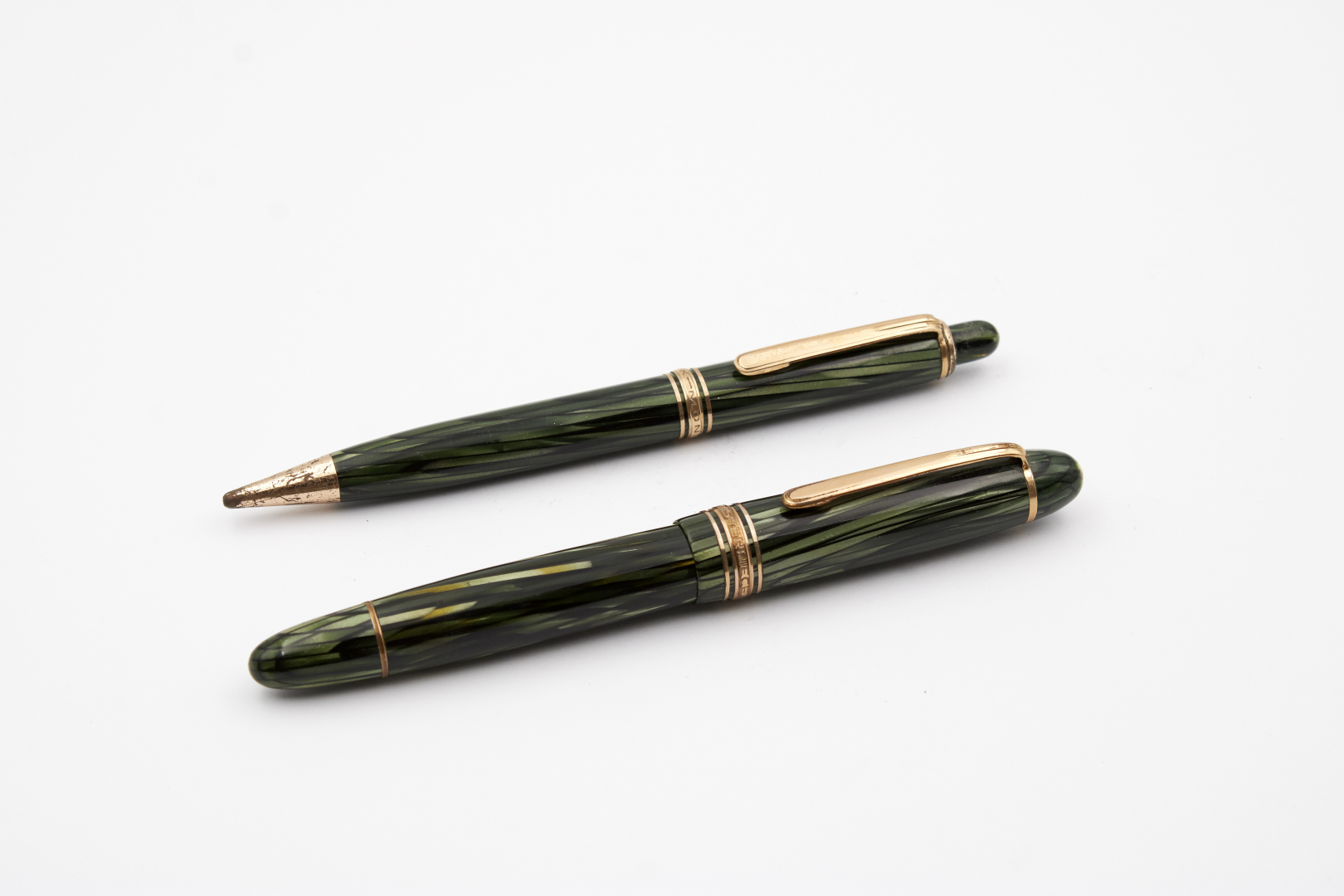 MONTBLANC MEISTERSTÜCK SET WITH 146 FOUNTAIN PEN AND PIX 172 MECHANICAL PENCIL, GREEN STRIATED