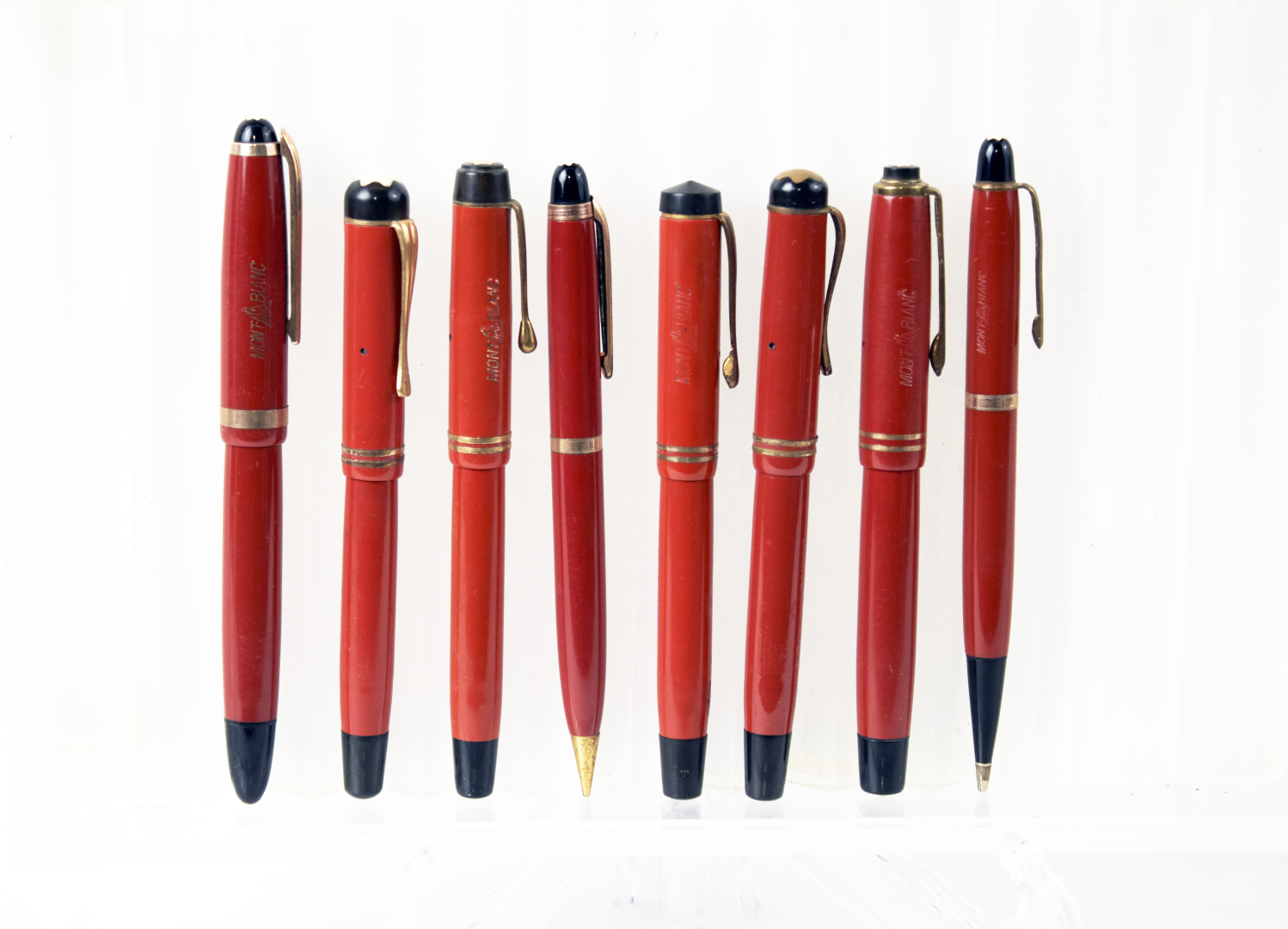 MONTBLANC LOT OF SIX FOUNTAIN PENS AND TWO PENCILS CORAL RED