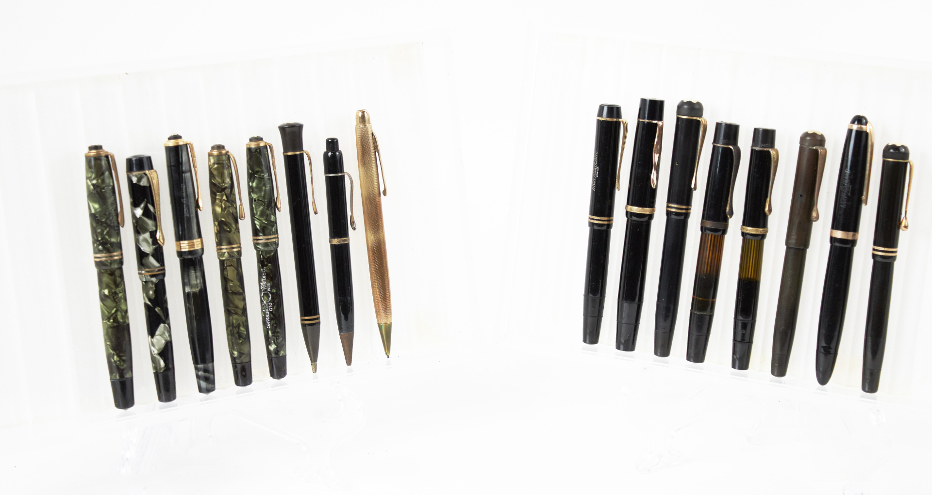 MONTBLANC LOT OF THIRTEEN FOUNTAIN PENS AND THREE PENCILS