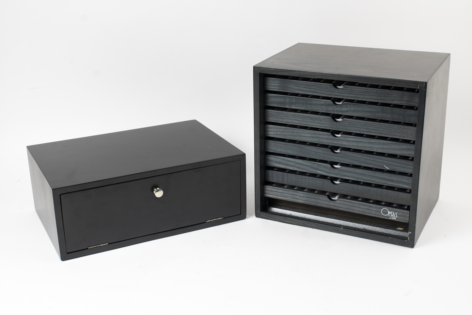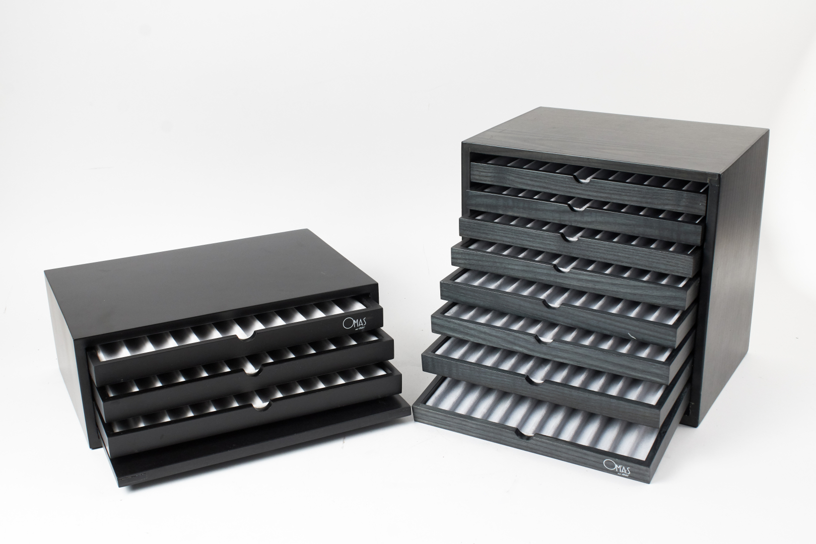 With 3 and 8 drawers respectively, each drawer divided into 12 compartments.