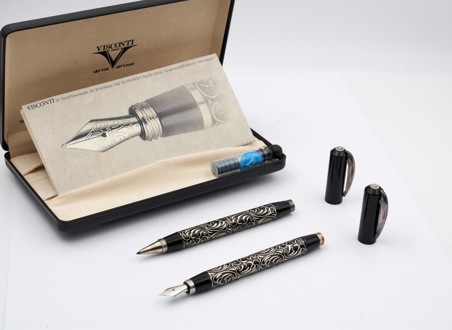 VISCONTI RINASCIMENTO VIENNA PARURE FOUNTAIN PEN AND ROLLERBALL PEN, BOX AND GUARANTEE