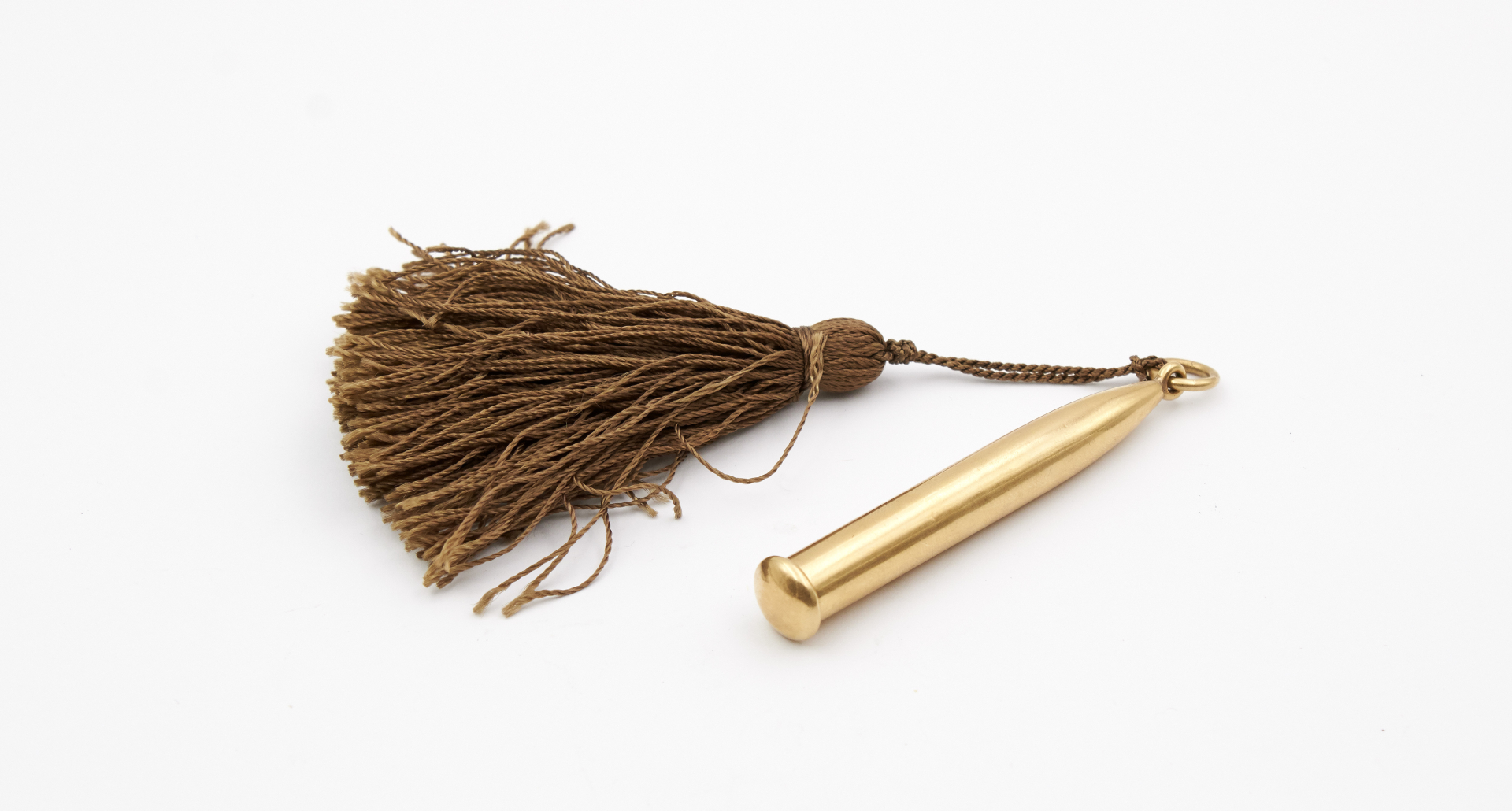 Bullet-shaped body and cap, in 18K gold, marked SM&Co with English hallmarks, telescopic body.