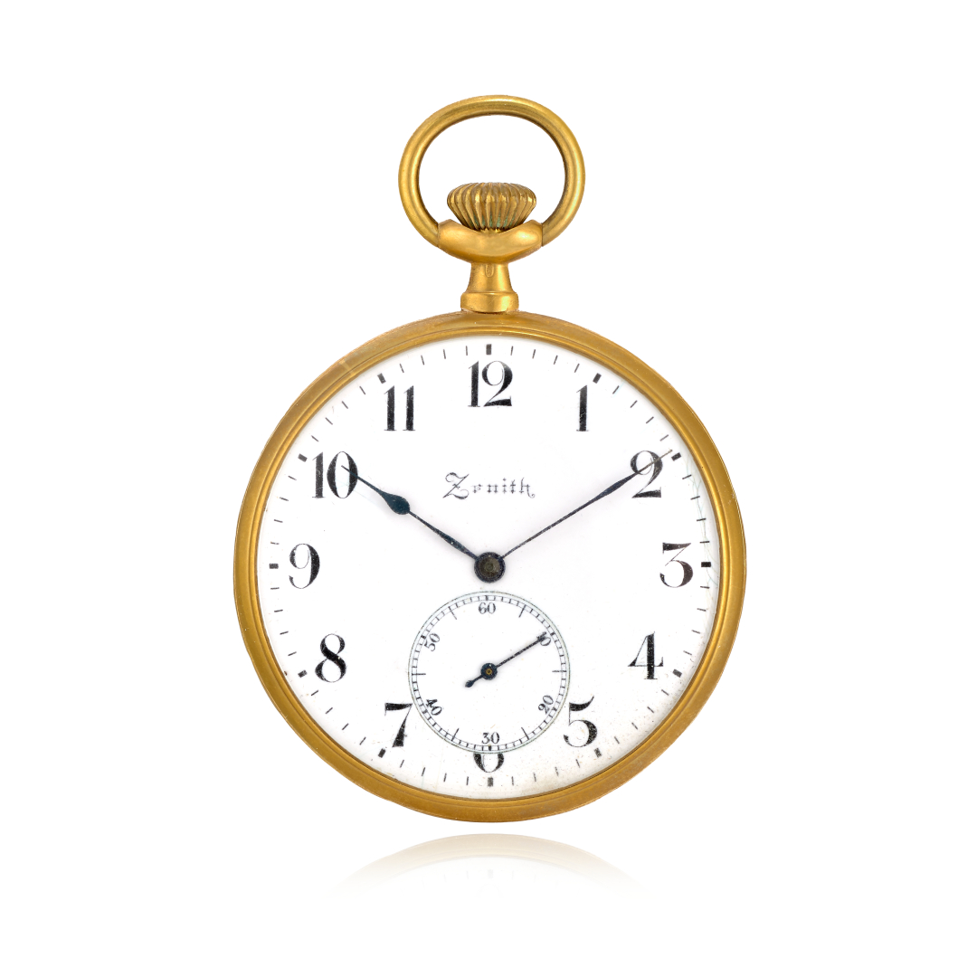 Dial: signed in Déco style, white enamel, painted numerals, seconds at six.