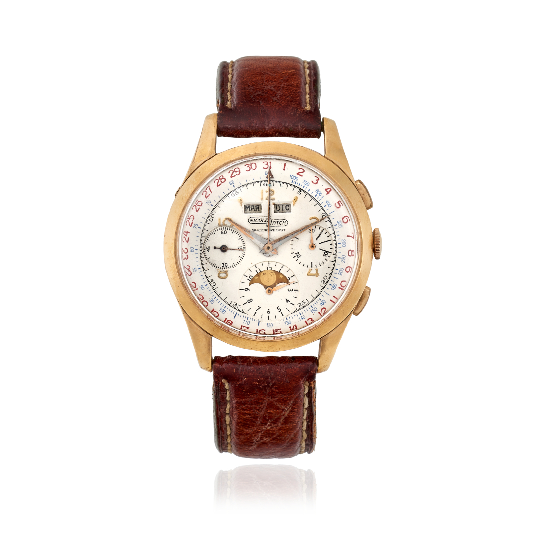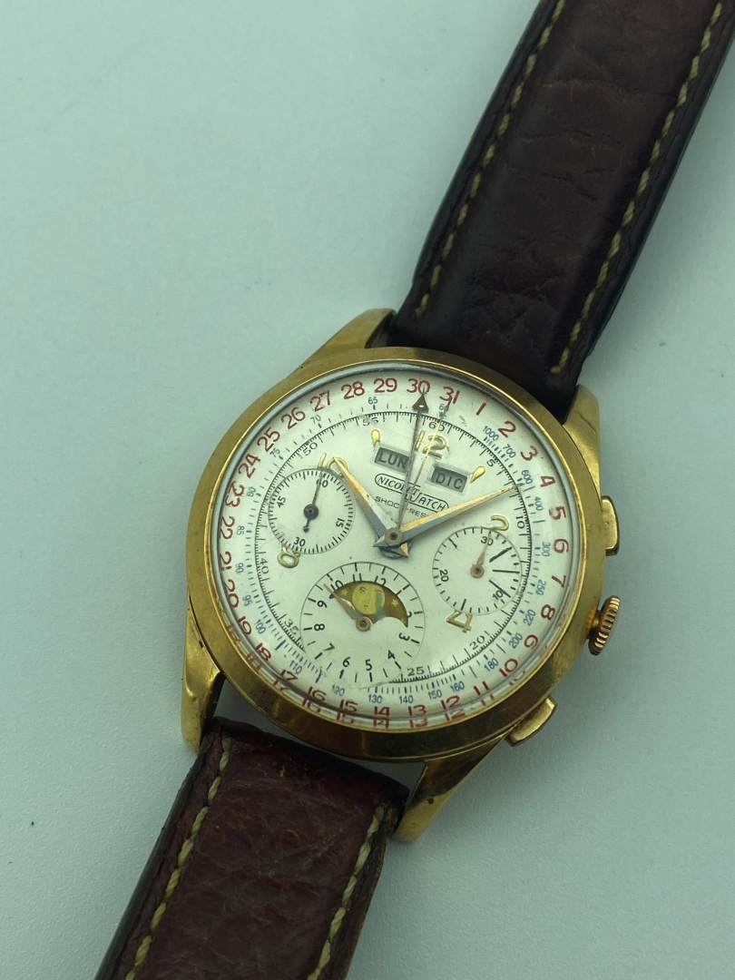 NICOLET WATCH CRONOGRAFO CON CALENDARIO E FASI LUNARI, ANNI ’50