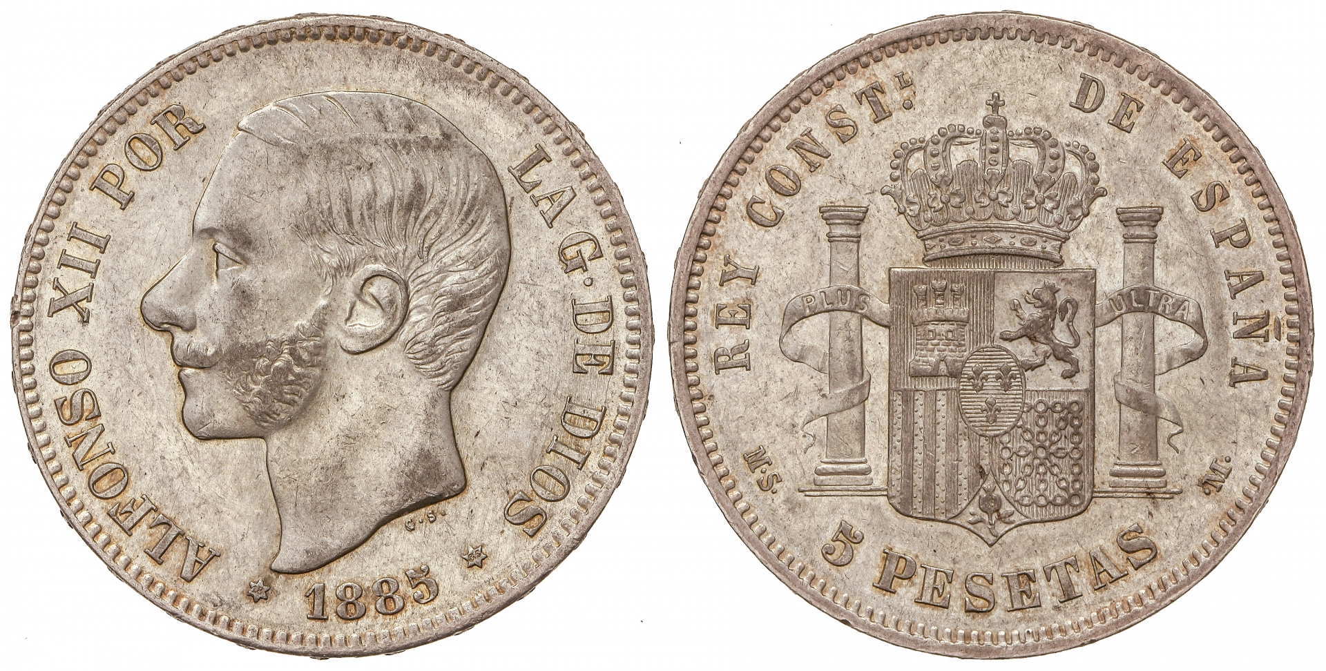 5 Pesetas. 1885 (*18-85). M.S.-M. (Leves golpecitos). EBC.