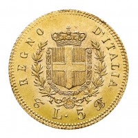 5 Lire 1863 - Zecca: Torino - Diritto: effigie del Re a sinistra - Rovescio: stemma di Casa Savoia coronato e circondato dal Collare dell'Annunziata - Di alta qualità