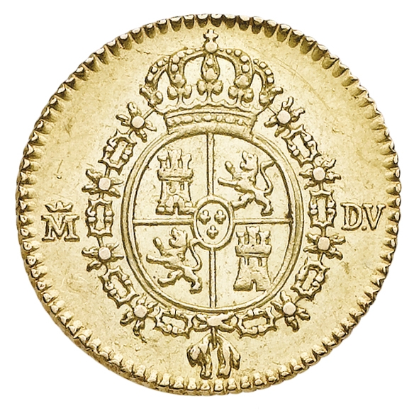Carlo III (1759-1788) - 1/2 Escudo 1786 - Zecca: Madrid - Diritto: effigie del Re a destra - Rovescio: stemma coronato e circondato dal Collare del Toson d'Oro - gr. 1,78