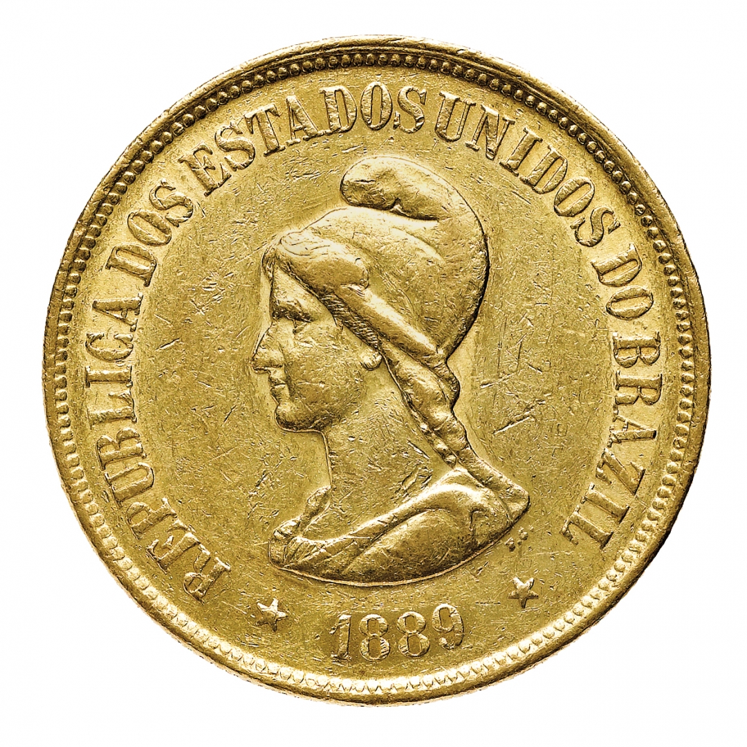 Prima Repubblica - 20.000 Reis 1889 - Zecca: Rio de Janeiro - Diritto: busto drappeggiato della Libertà a sinistra - Rovescio: le stelle della Croce del Sud - Non comune