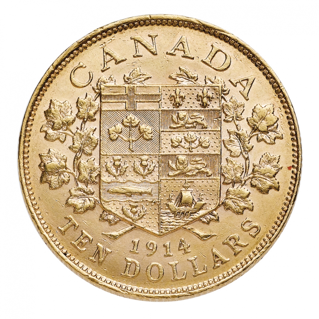 George V (1910-1936) - 5 e 10 Dollari 1914 - Zecca: Ottawa - Diritto: effigie coronata del Re a sinistra - Rovescio: stemma entro due rami di acero