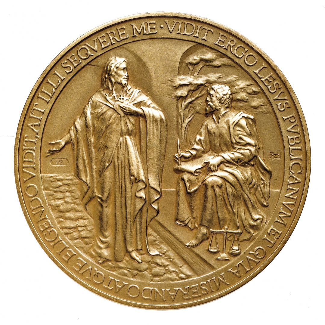 Francesco (dal 2013) - Medaglia annuale Anno I - Diametro mm. 44 - gr. 60,00 - Opus Mariangela Crisciotti - Rara - Si tratta della prima medaglia papale che presenta un errore; nello specifico compare la lettera L invece della lettera J di Jesus nella legenda del rovescio