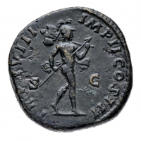 Sesterzio databile agli anni 163-164 d.C. - Zecca: Roma - Diritto: testa laureata dell'Imperatore a destra - Rovescio: Marte in cammino verso destra tiene una lancia con la mano destra e un trofeo con la sinistra - gr. 24,48