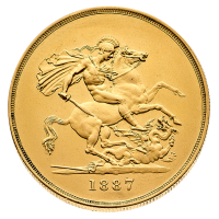 Victoria (1837-1901) - 5 Pounds 1887 Jubilee Head - Zecca: Londra - Diritto: busto coronato, diademato e velato della Regina a sinistra - Rovescio: San Giorgio a cavallo trafigge il drago - gr. 39,85 - Tracce di pulitura, altrimenti SPL