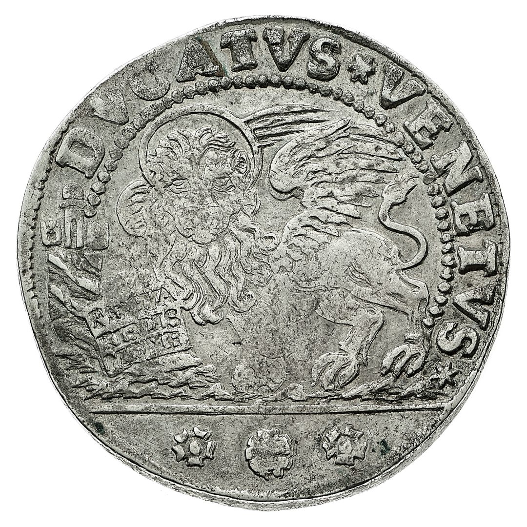 Pietro Grimani (1741-1752) - Ducato - Zecca: Venezia - Diritto: il Doge genuflesso riceve da San Marco il vessillo della Repubblica - Rovescio: leone di San Marco a sinistra con la testa di fronte, regge il Vangelo con la zampa anteriore destra - gr. 22,75 - Sigle AB - Lievi depositi, migliore di BB