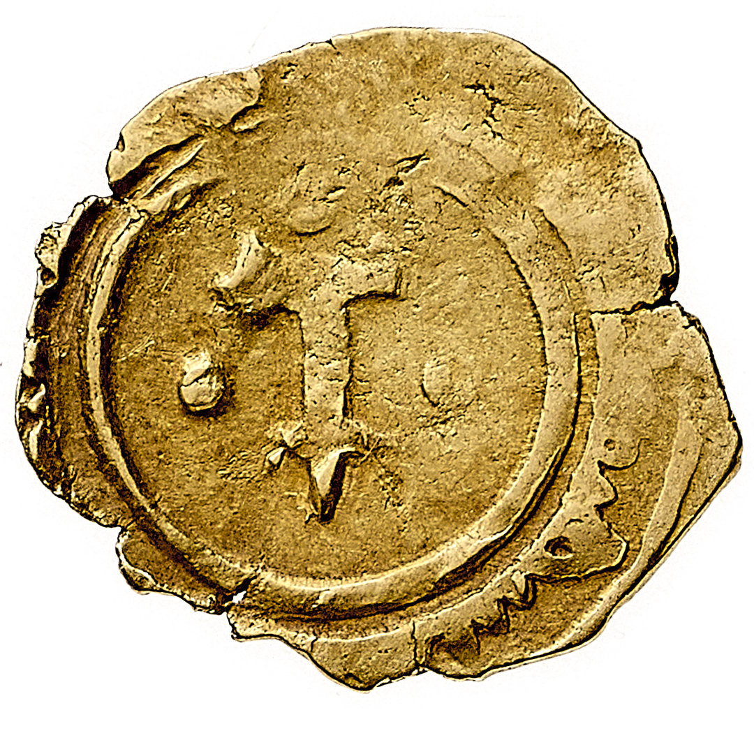 Ruggero I Conte (1072-1101) - Tarì - Zecca: Palermo o Messina - Diritto: legenda cufica disposta su tre righe orizzontali - Rovescio: lettera "T" entro legenda circolare - gr. 0,72 - Lieve ondulazione del tondello, BB