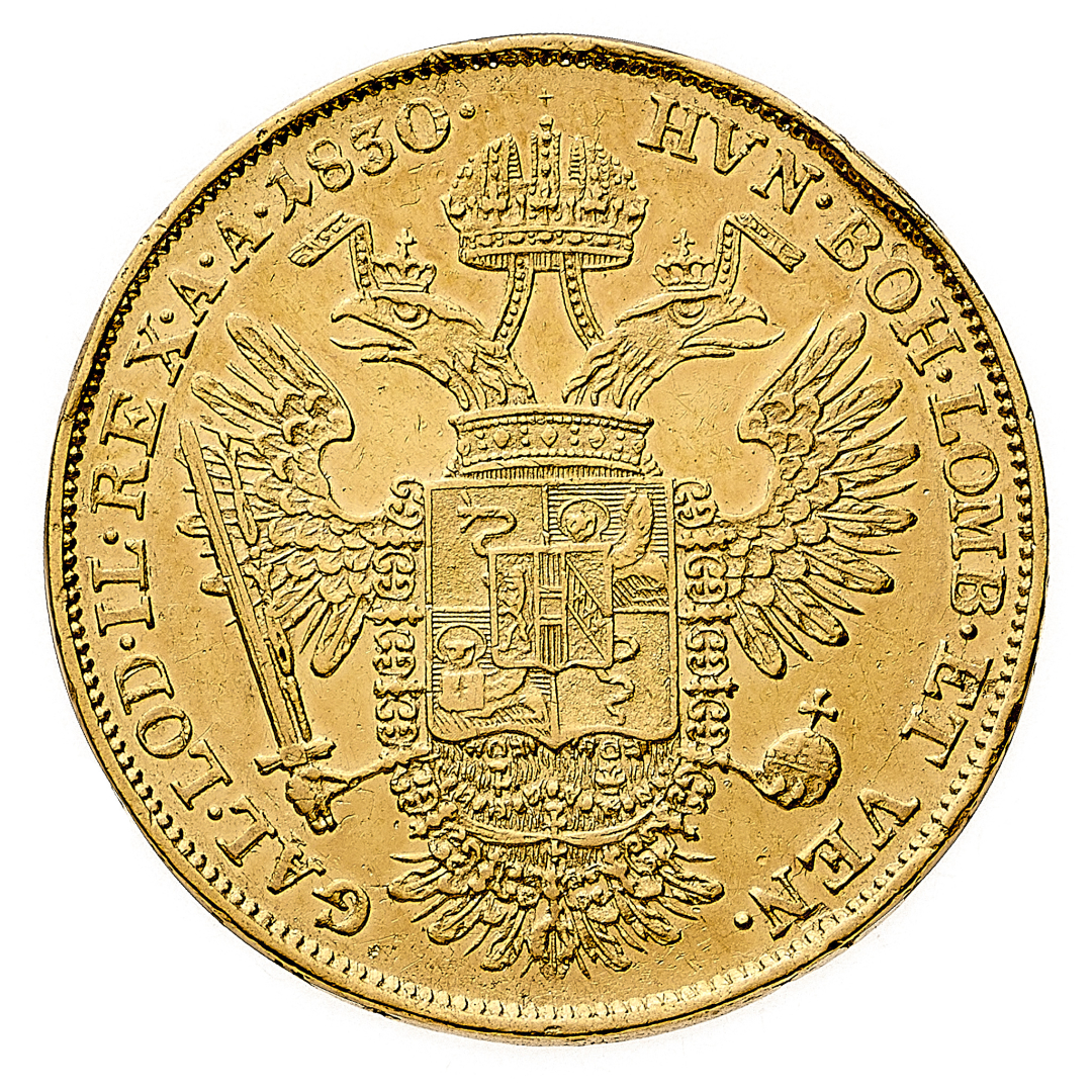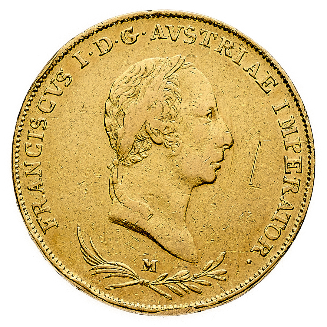 Francesco I d'Asburgo (1815-1835) - Sovrana 1830 - Zecca: Milano - Diritto: effigie laureata di Francesco I a destra - Rovescio: aquila bicipite coronata con lo stemma del Lombardo-Veneto sul petto - gr. 11,28 - Lievi colpetti al contorno e graffi, BB