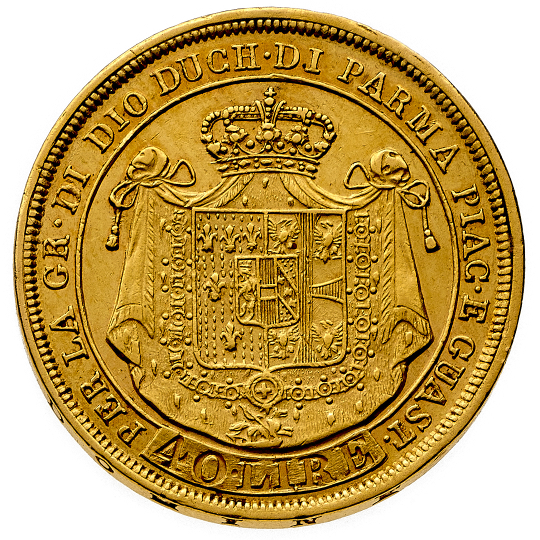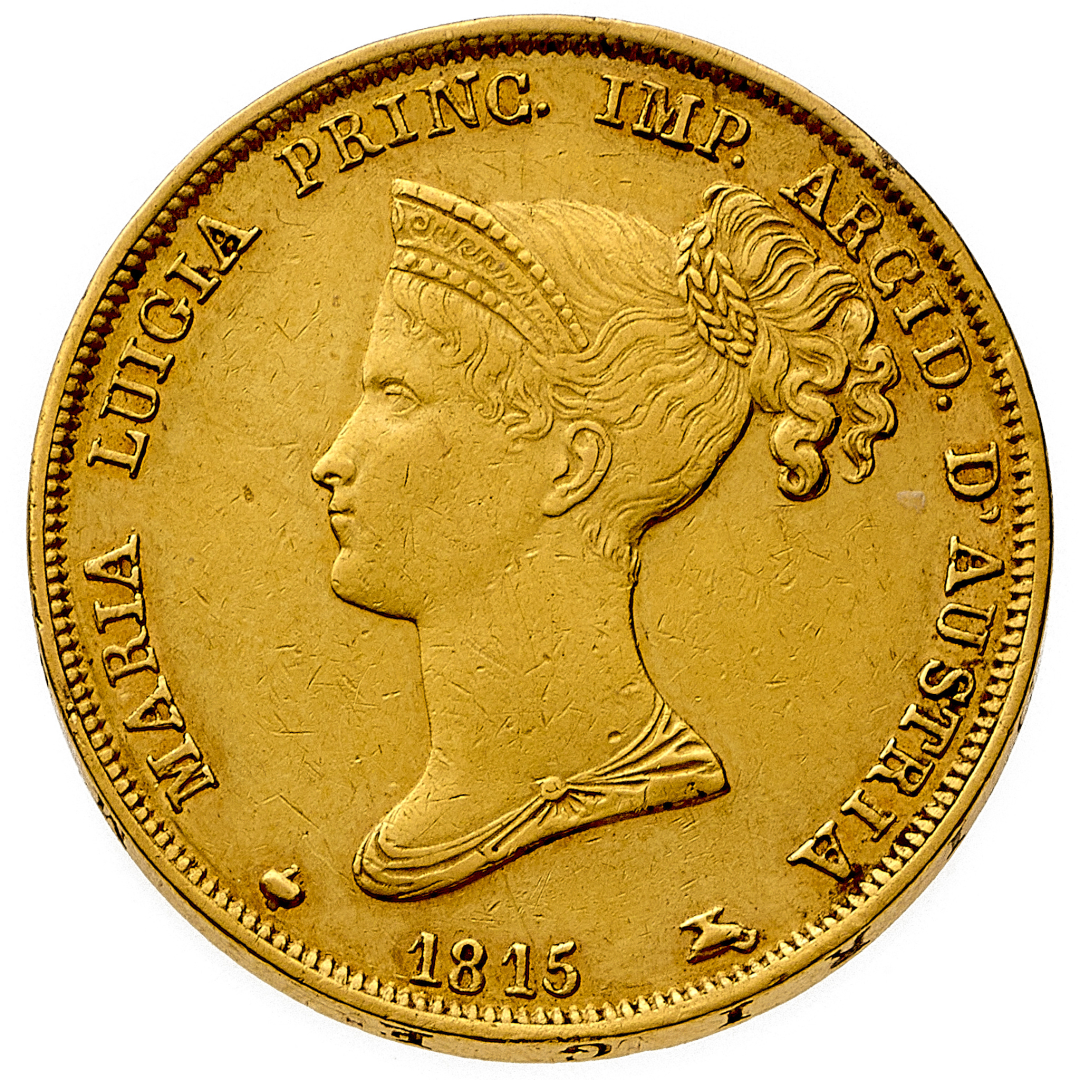 Maria Luigia d'Austria (1815-1847) - 40 Lire 1815 - Zecca: Milano - Diritto: effigie della Duchessa a sinistra - Rovescio: stemma entro padiglione ornato e coronato - gr. 12,88 - q.SPL