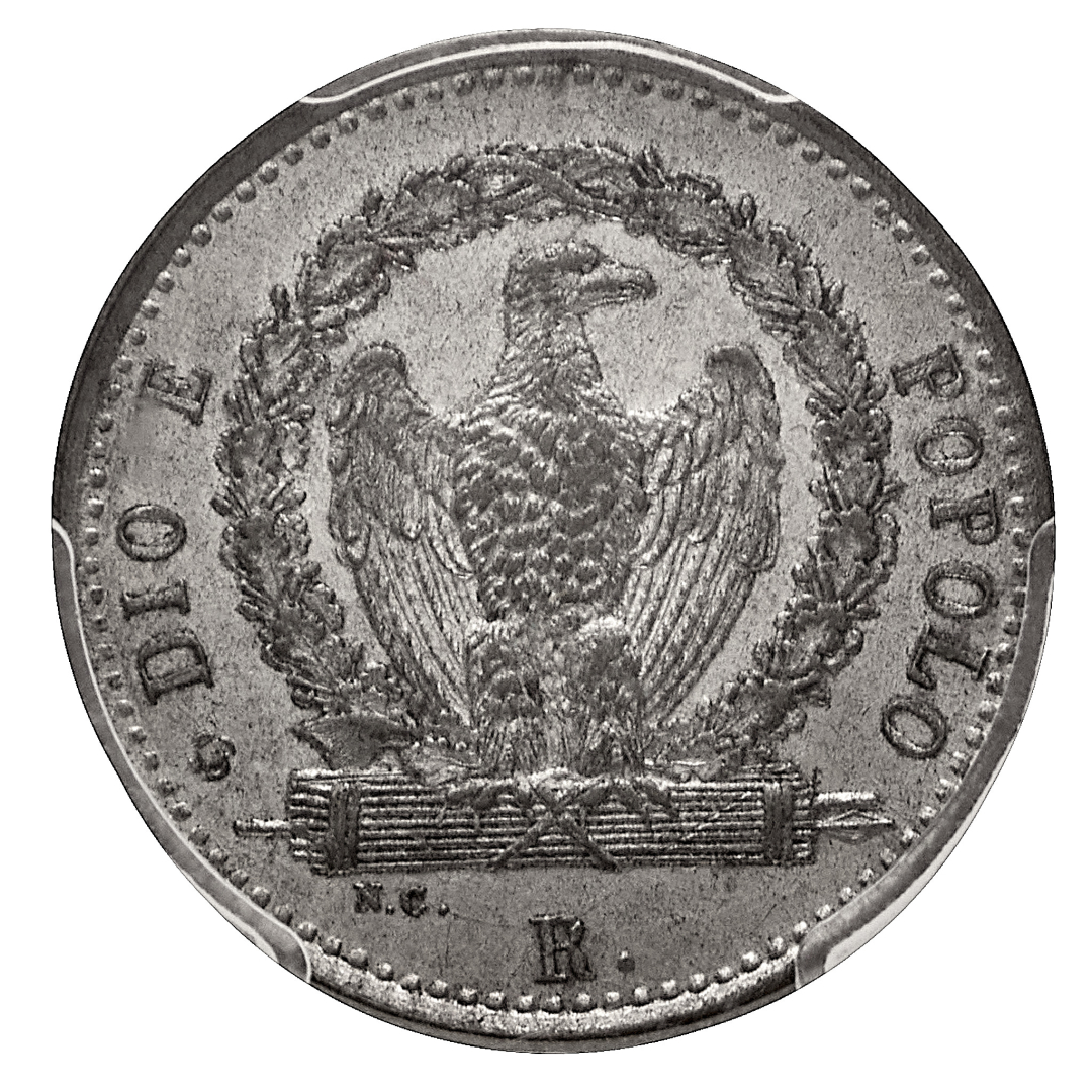 8 Baiocchi 1849 PCGS MS 62 - Zecca: Roma - Diritto: valore su due righe entro legenda circolare - Rovescio: aquila ad ali spiegate su fascio entro corona di quercia - Cert. #35183548