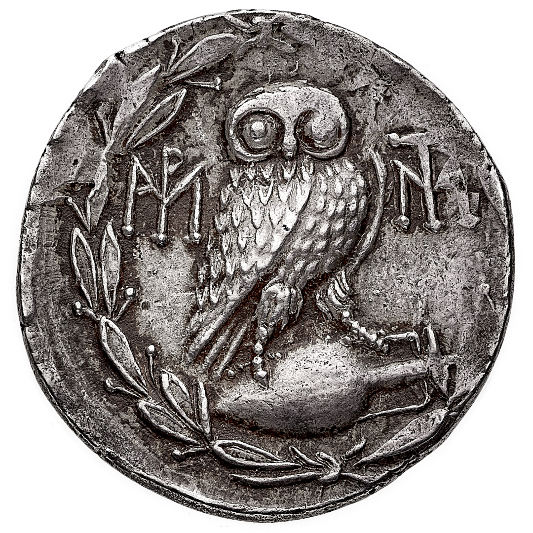 Atene - Tetradramma, emissione di Silla databile al periodo 86-84 a.C. - Diritto: testa di Atena a destra con elmo crestato e ornato di foglie - Rovescio: civetta stante a destra con la testa di fronte entro corona di alloro - gr. 16,71 - Rara - Patina di medagliere, SPL - Proveniente dall'asta Roma Numismatics IX, Londra 22.3.2015, n. 192 e dall'asta Classical Numismatic Group 64, Lancaster 24.9.2003, n. 212
