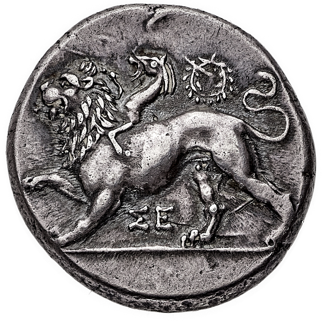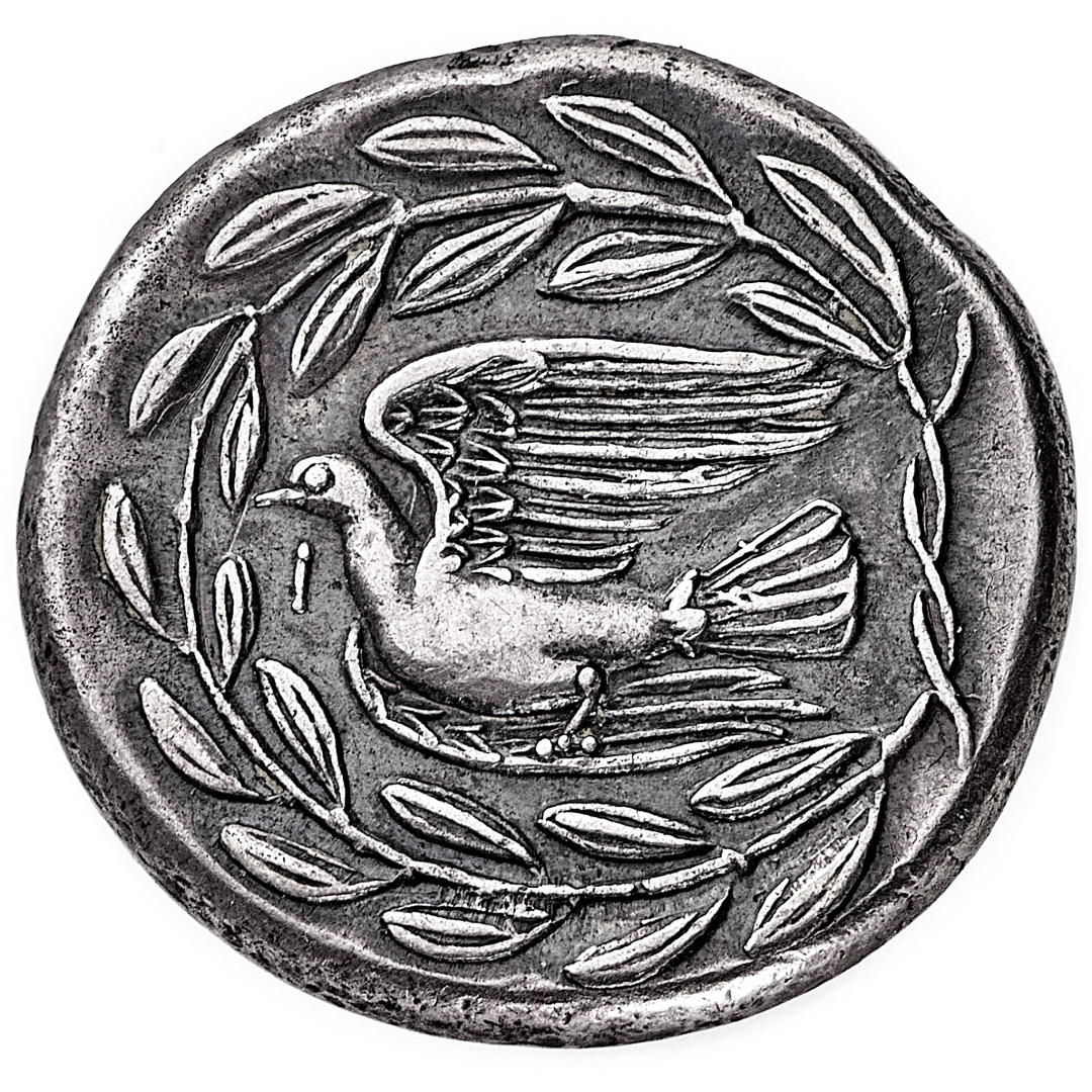 Sikyon - Statere databile al 330 a.C. circa - Diritto: chimera stante a sinistra; in alto una corona di quercia, fra le zampe SE - Rovescio: colomba in volo verso sinistra all'interno di una corona di ulivo; sotto il collo la lettera I - gr. 12,24 - Rara - Gradevole patina di medagliere, ottima centratura, SPL - Proveniente dalla Barry Feirstein Collection, asta NAC 39, Zurigo 16.5.2007, n. 50 e precedentemente acquistata da Classical Numismatic Group