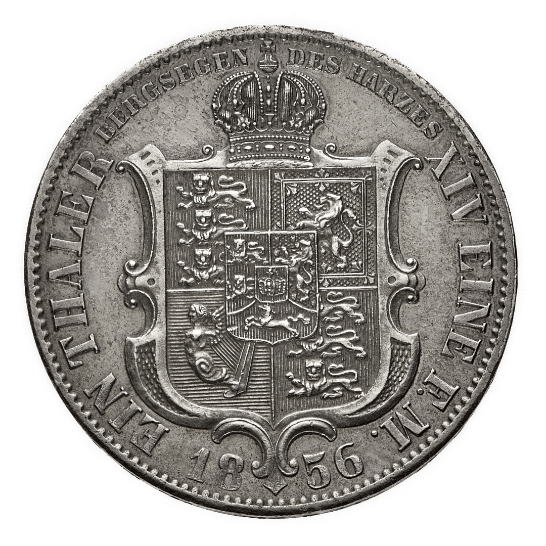 Hannover - Georg V (1851-1866) - Tallero 1856 - Diritto: effigie di Georg V a sinistra - Rovescio: stemma coronato - gr. 22,31 - Lieve colpetto al contorno, q.SPL
