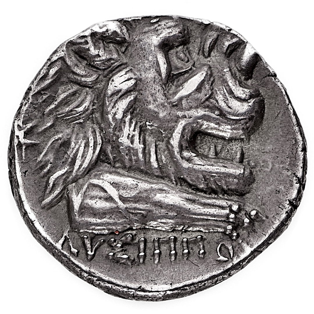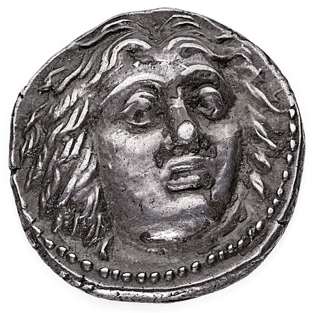 Knidos - Didramma databile al periodo 210-185 a.C., Lisippo magistrato - Diritto: testa di Helios di tre quarti verso destra - Rovescio: protome di leone a destra con le fauci aperte dalle quali fuoriesce la lingua - gr. 5,28 - Rara - Patina di medagliere, SPL - Proveniente dall'asta Fritz Rudolf Künker 262, Osnabrück 13.3.2015, n. 7237