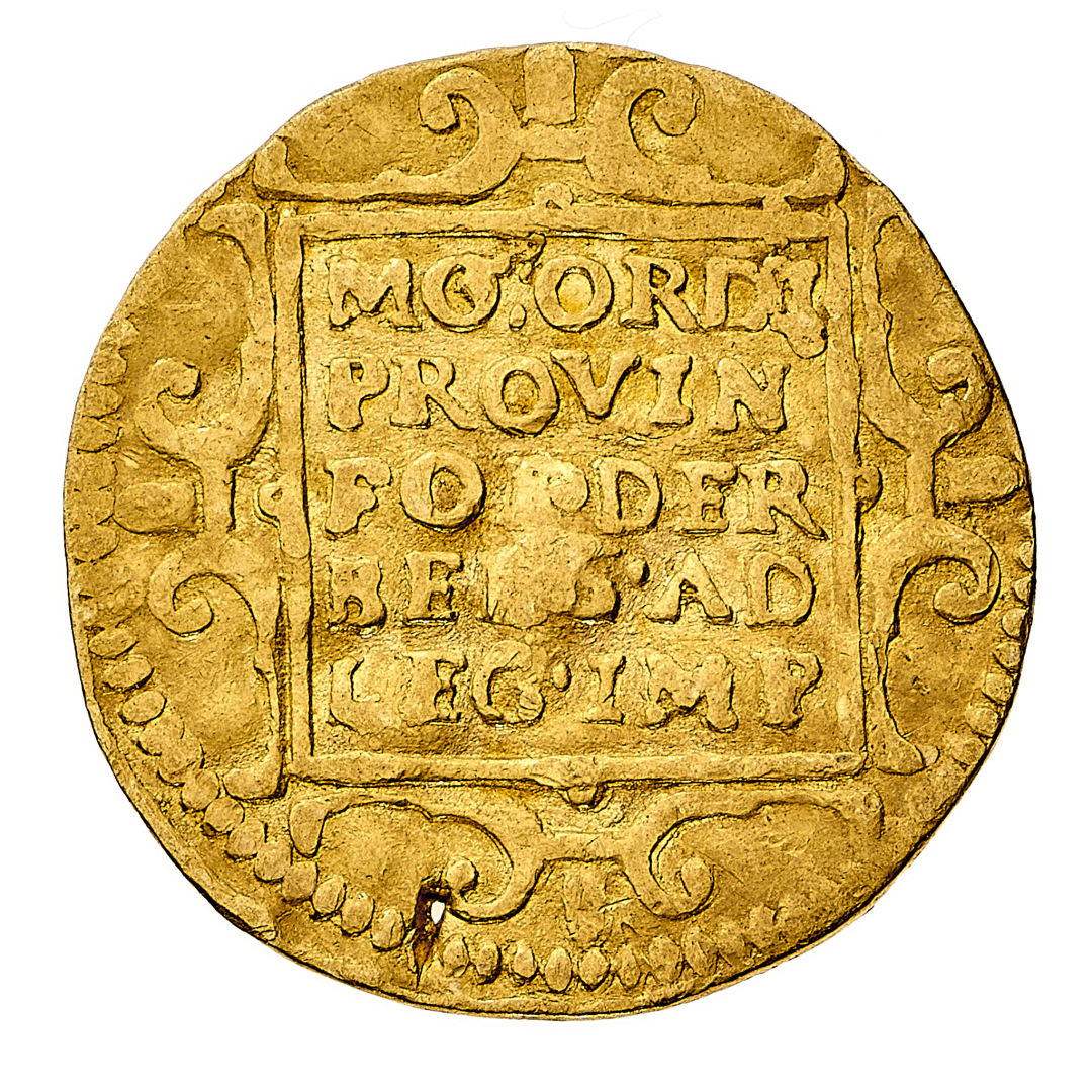 Province Unite (1581-1795) - Ducato 1608 - Zecca: Utrecht - Diritto: guerriero con elmo e corazza di foggia cinquecentesca, stante a destra con spadone e frecce - Rovescio: legenda in cinque righe entro quadrato riccamente ornato - gr. 3,36 - BB