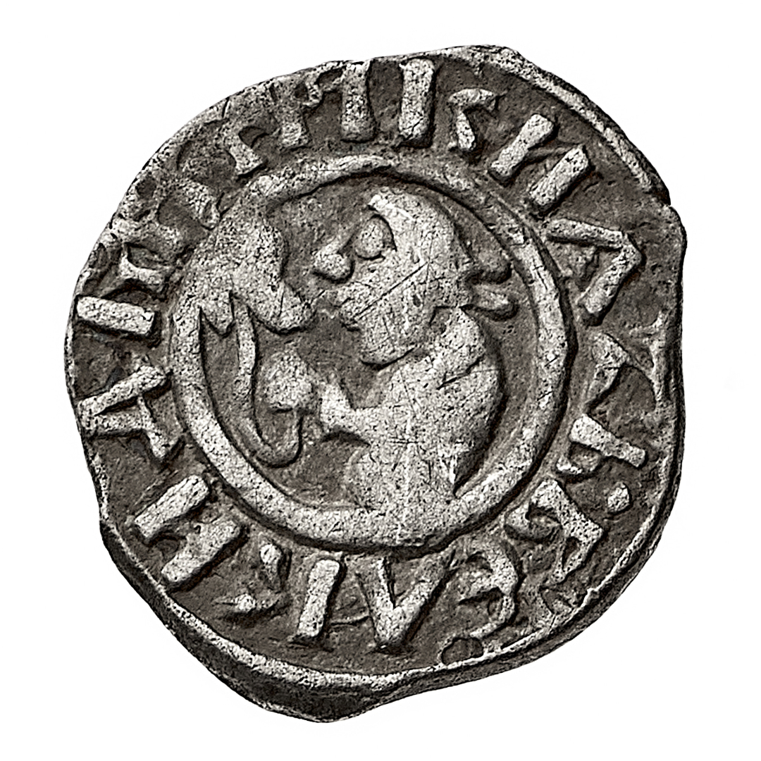 Dmitry Donskoy (1362-1389) - Denga - Diritto: guerriero a sinistra tiene un serpente con la mano sinistra - Rovescio: legenda in arabo - gr. 0,98 - Molto rara - BB - Proveniente dall'asta Katz eAuction 106, 27.12.2023, n. 1203