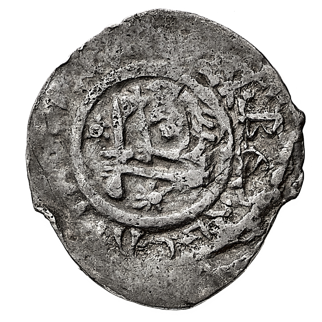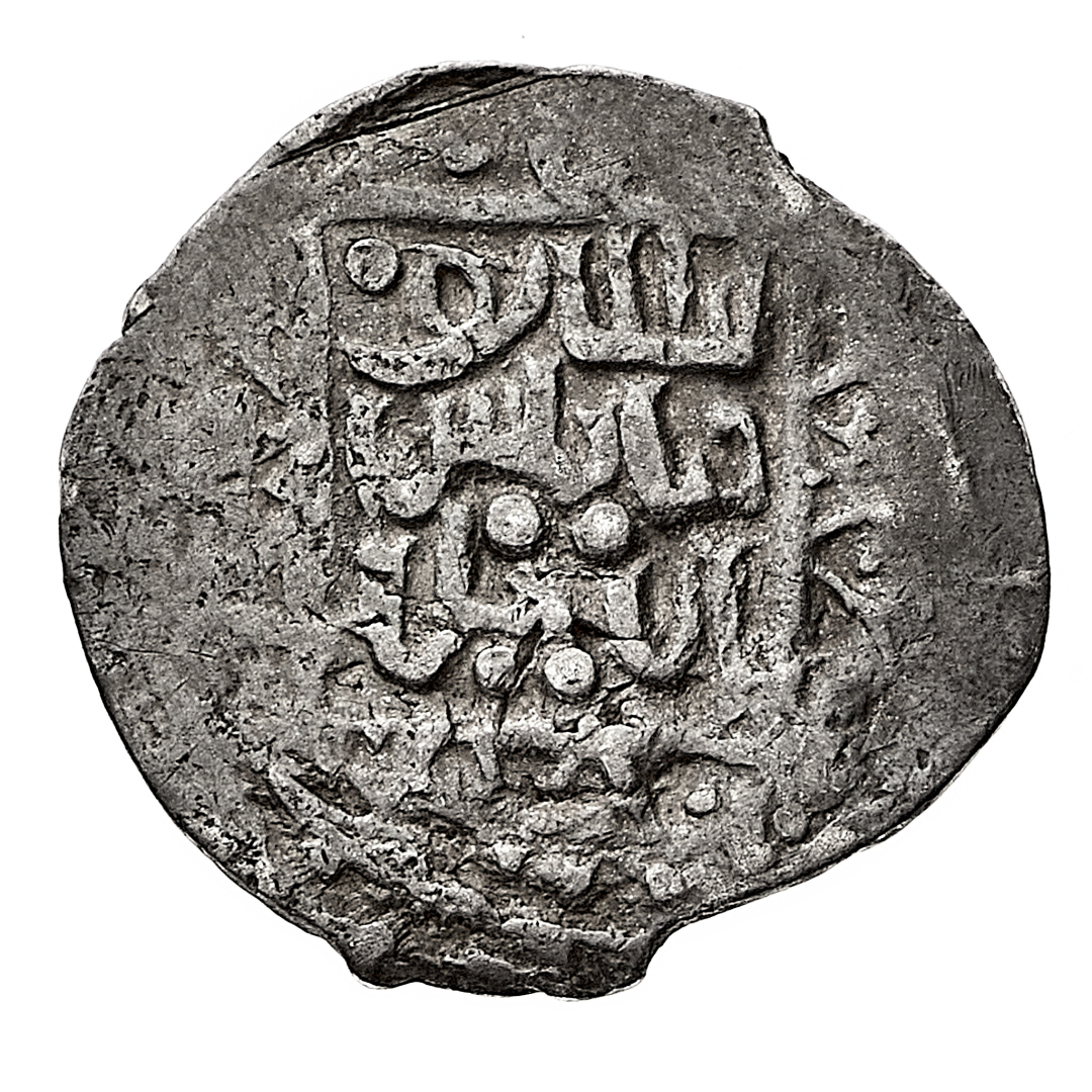 Dmitry Donskoy (1362-1389) - Vladimir - Denga - Diritto: guerriero a sinistra tiene una spada con la mano sinistra e un'ascia con la destra - Rovescio: legenda in arabo - gr. 0,93 - Rara - BB - Proveniente dall'asta Katz eAuction 106, 27.12.2023, n. 1202