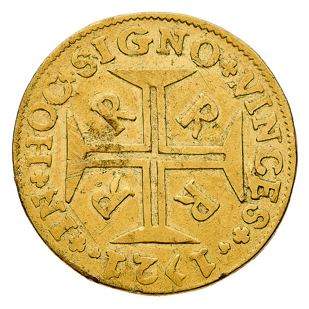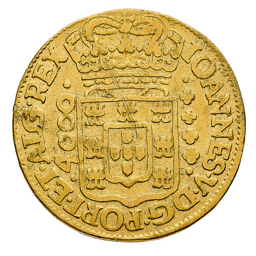 Joao V (1706-1750) - 4.000 Reis 1721 - Zecca: Rio de Janeiro - Diritto: stemma coronato - Rovescio: croce quadrilobata accantonata da quattro R - gr. 9,99 - q.BB